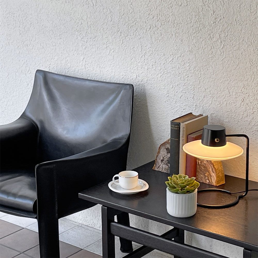 晩年の代表作、イギリスにおける最高学府オックスフォード大学のキャサリンズ・カレッジを設計した際にデザインされたテーブルランプ。