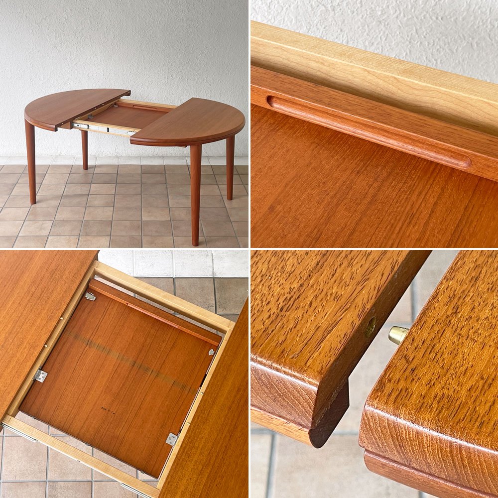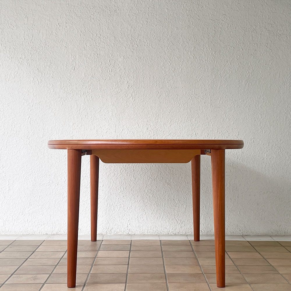 青林製作所 チーク無垢材 ラウンド ダイニングテーブル エクステンション 幅105-155cm ジャパンビンテージ ◇