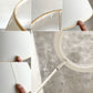スチールロッドを組み合わせたラインの細いシルエットに、柔らかな光が目を惹くランプシェードの組み合わせは、シンプルなフォルムで現代的でありながら、どこか温かみを感じさせます。