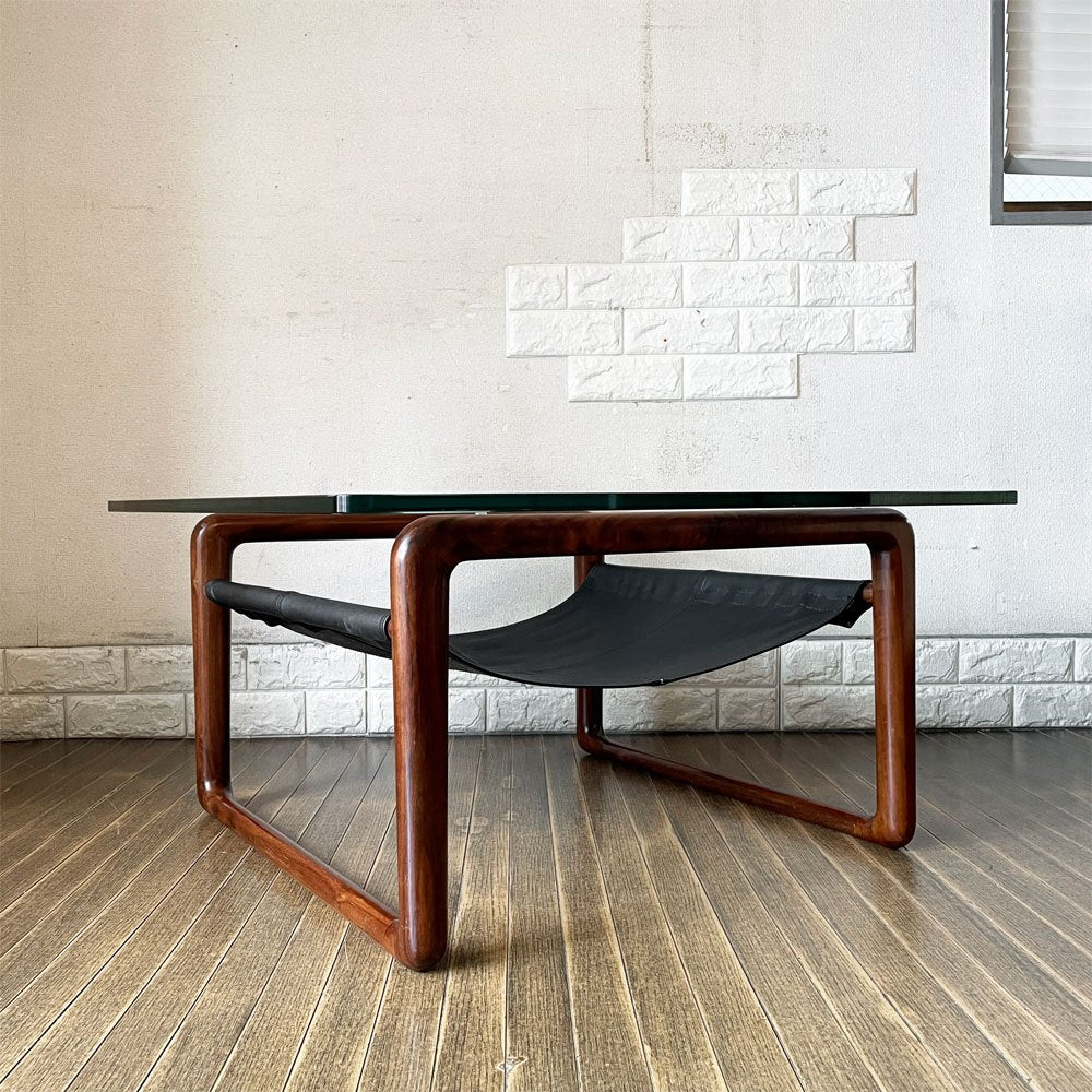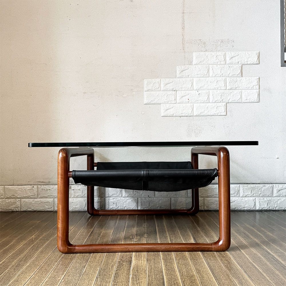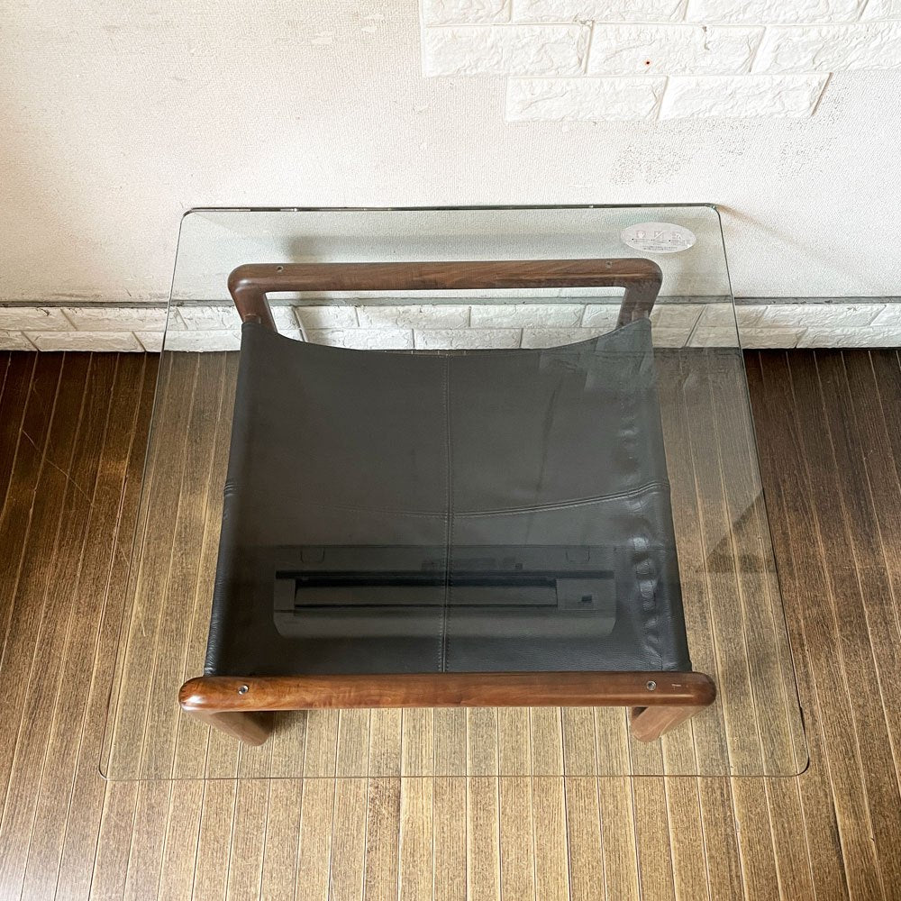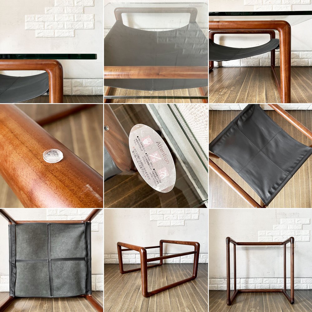 ケンオクヤマデザイン KEN OKUYAMA DESIGN ハンモック リビングテーブル ローテーブル ガラス×ウォールナット×ブラックレザー W80cm 奥山清行 定価¥99,800- 廃番 ~その贅沢は味方~