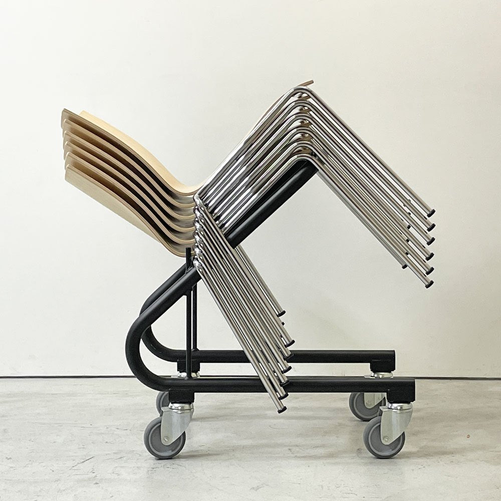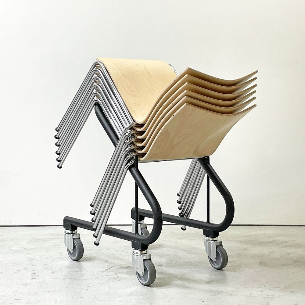 なお今回はオーソドックスな4本脚仕様かつスタッキングも可能なうえ、専用のトローリーが付属。ダイニングチェアのほかオフィスのミーティングチェアにも最適です。