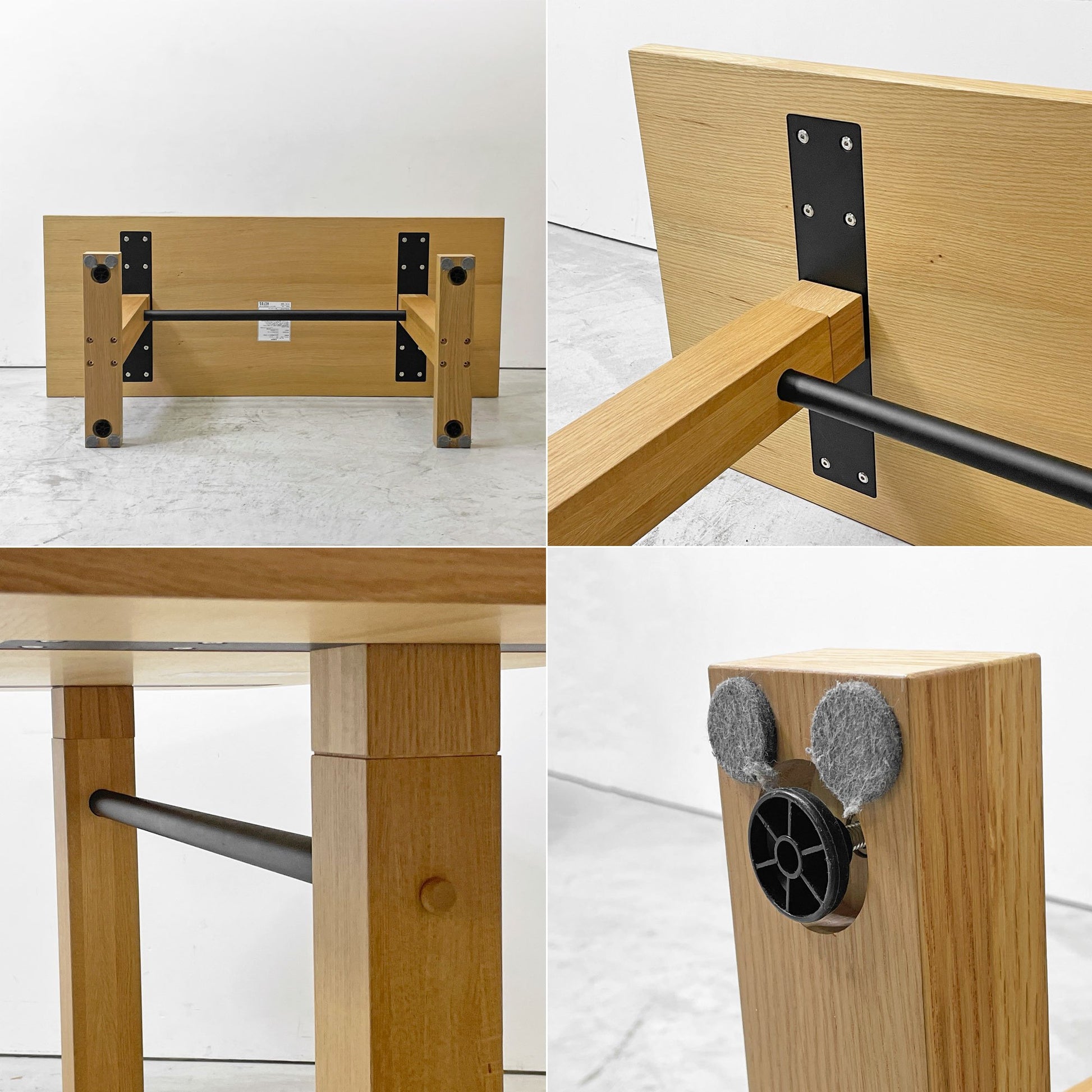 上質なオーク材の表情と、クラフト感溢れるフレームワーク、補強を兼ねたブラックカラーのメタルフレームがアクセントとなり、洗練されたスタイリッシュさを演出します。