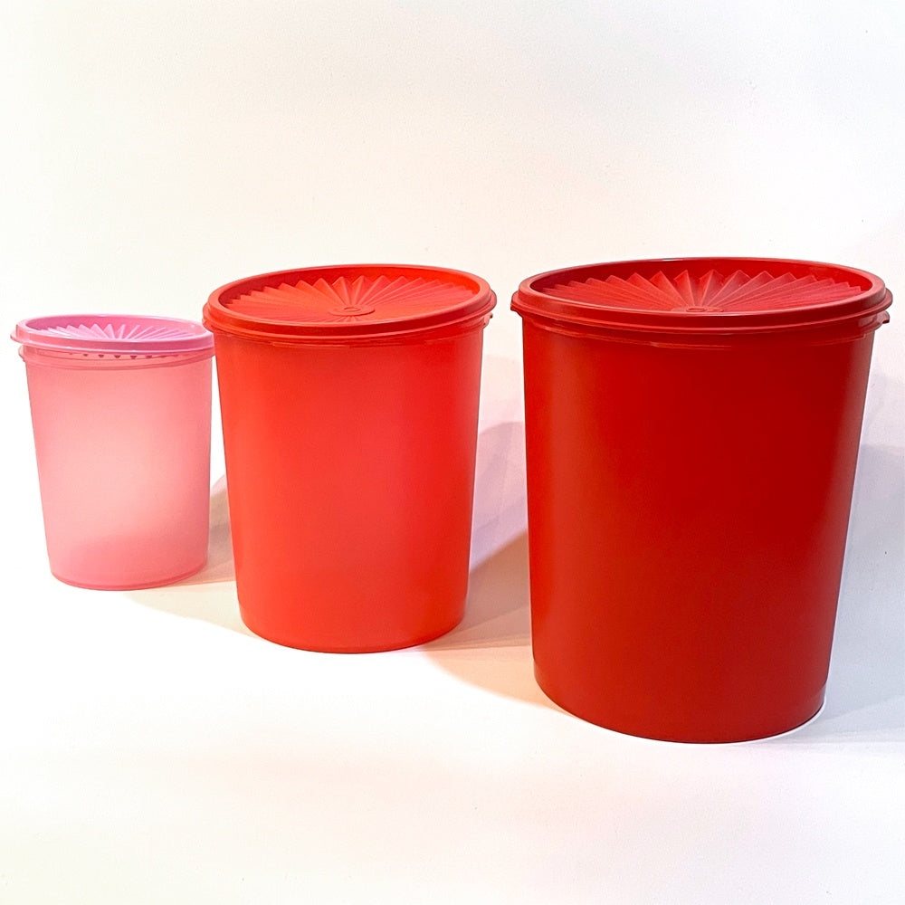 古くから日本では保存容器などで知られるタッパーウェア。‹br› アメリカの多国籍企業で、根強い人気を誇るキッチン用品ブランドとなります。‹br› ‹br› こちらは真ん中を押すだけで簡単密封できるクイックシール。‹br› 密封力が高く、調味料や保存食、乾物などをストックするのにとても便利な保存容器。‹br› ‹br› 容器はうっすらと内容量が見える程度の半透明化をしており、残量等を確認しながらご使用いただけます。‹br› ‹br› 本来4個セットとなりますが、こちらは3点セットとなります。‹br› 各サイズは下記の通りとなります。‹br› 大 W19×D19×H22cm‹br› 中 W17×D17×H19cm‹br› 小 W13×D13×H16cm‹br›