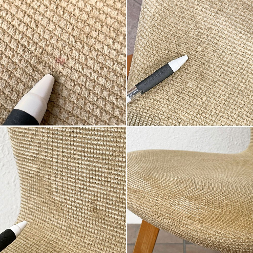 使用に伴う擦れ傷の他、ファブリックには毛羽立ちや型くずれ、僅かなヘタリ、座面と背もたれの境目に小さな染み、脚先を中心にいくらかの打痕や水痕、着色などいくらかの使用感はございますが、いずれも大きく目立つものではございません。グラつき等ご使用に問題となるダメージは無く、引き続き雰囲気を楽しみながらお使い頂けるUSED品として概ね良好なコンディションを保っております。
