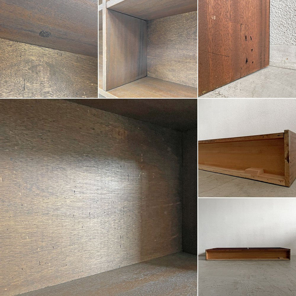 直線を基調としたシンプルなデザインながらレトロな佇まいをお楽しみいただけるシェルフ。古家具ならではのやれた表情が空間に溶け込んでくれます。