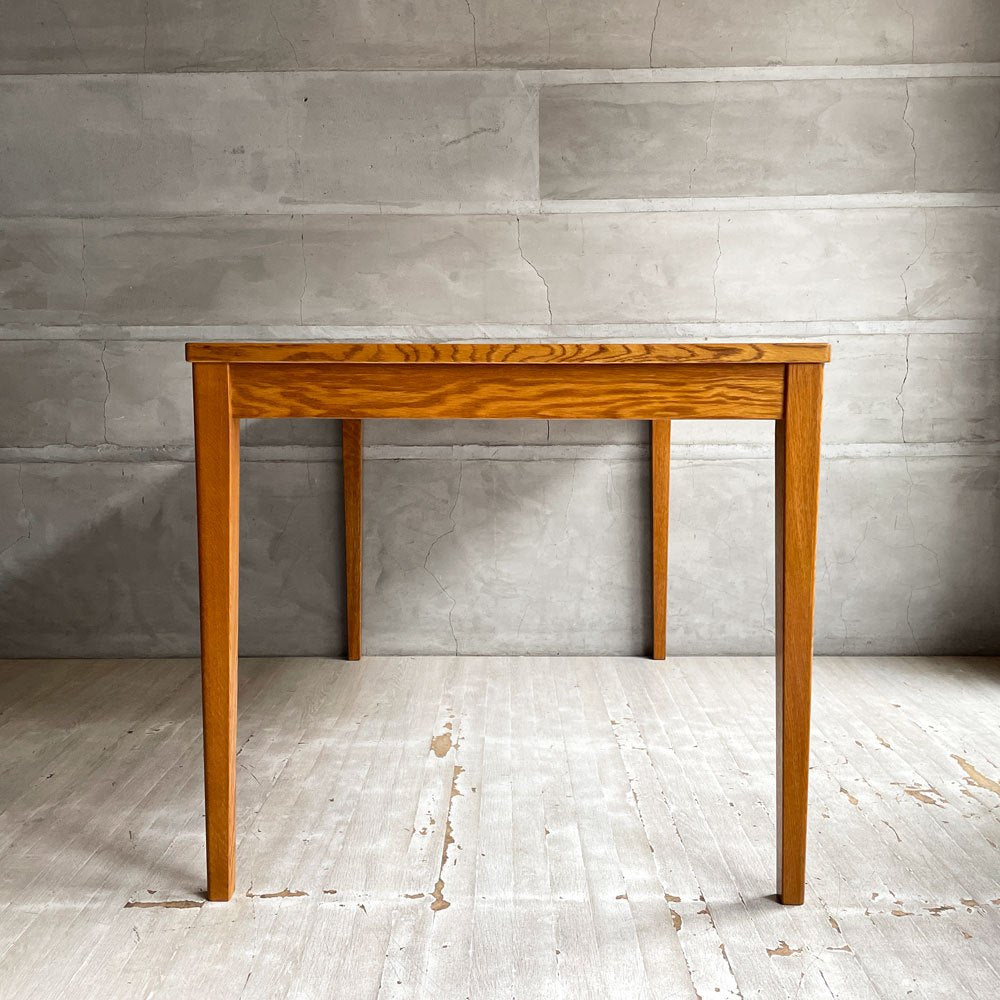 シンプルなルックスでありながら天板の角は面取りを施していたり脚部はテーパードとなっている為、軽やかな見た目に仕上がり、職人の丁寧な手仕事が伺えます。