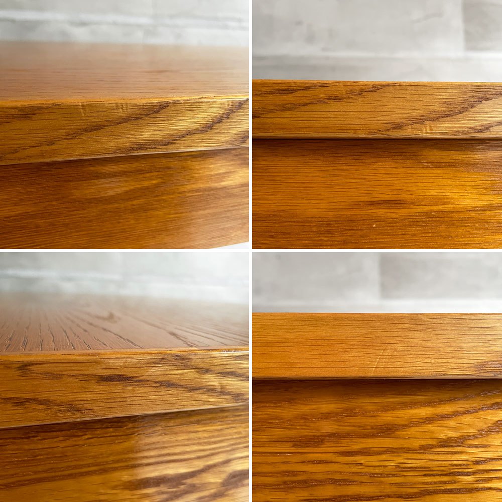 スタンダードトレード のデスクの中でも最もシンプルなデザインのアイテム。装飾などを施さない事で、力強い杢目で「森の王」の異名を持つオーク材の風合いが前面に押し出されています。