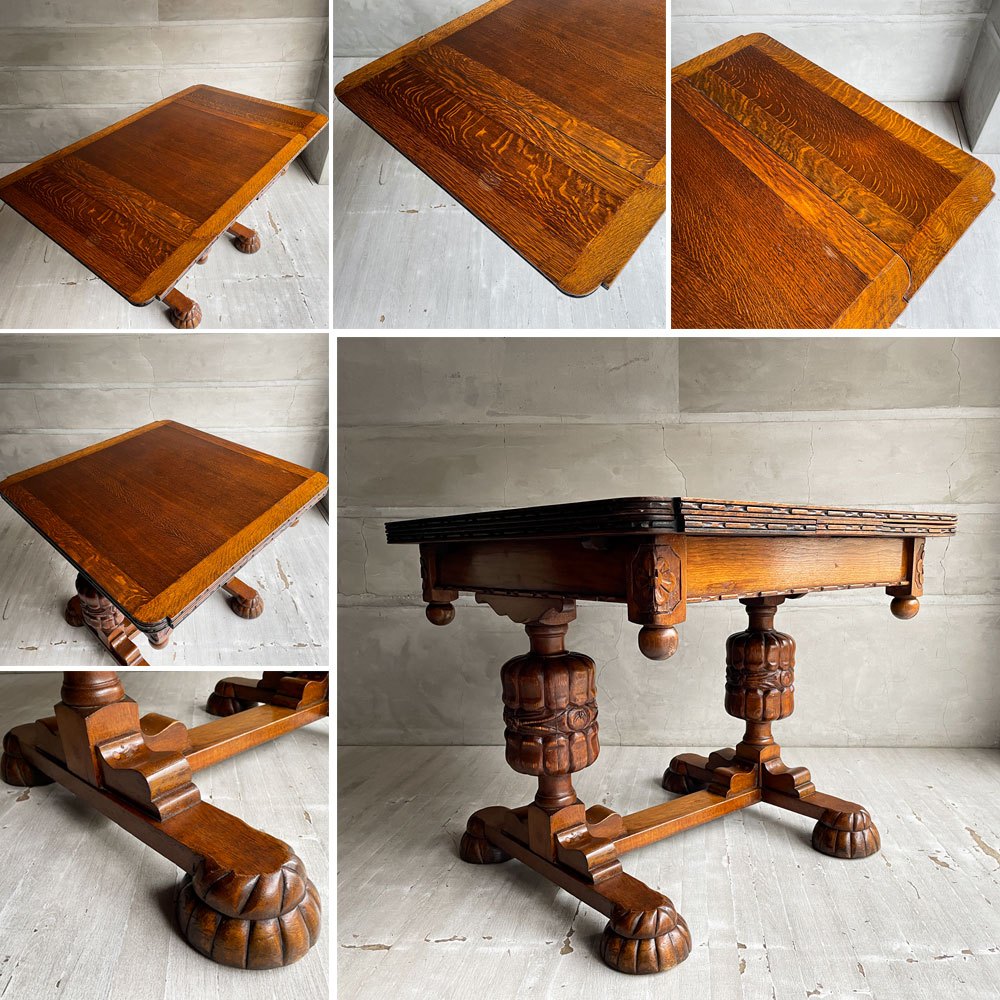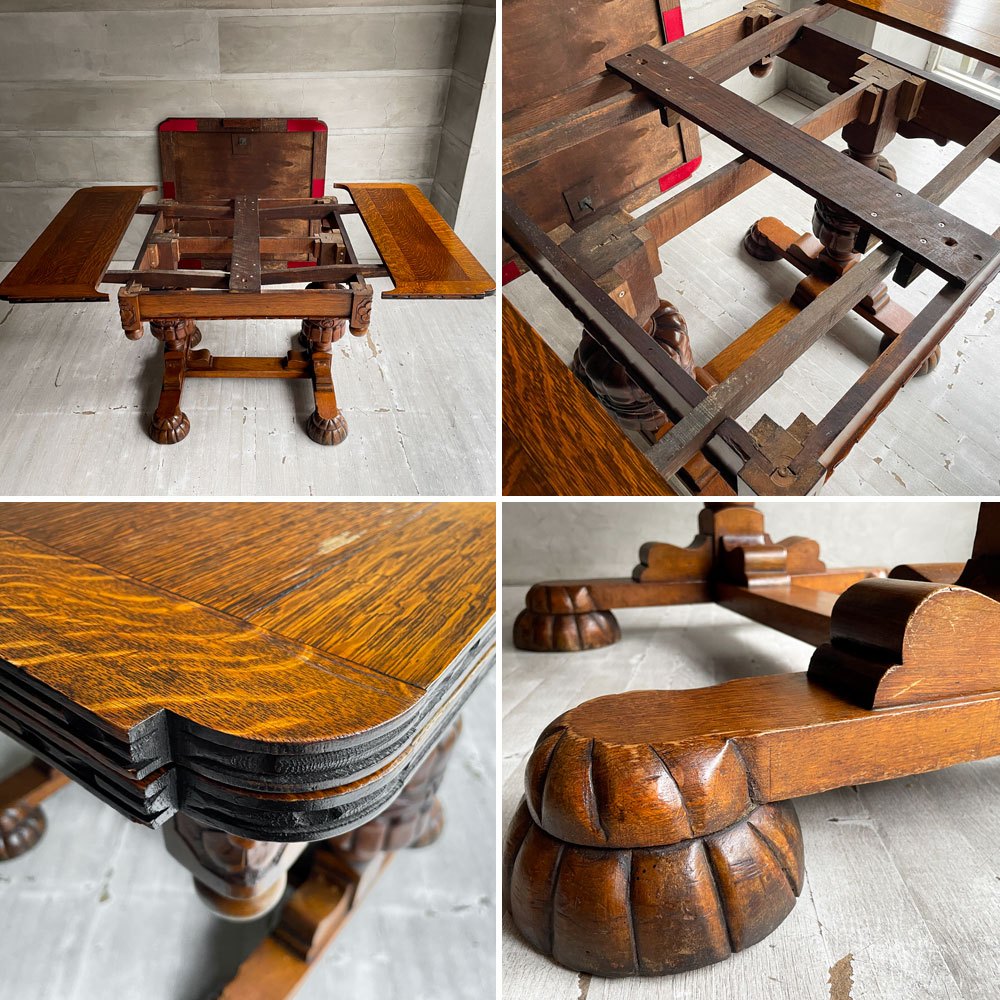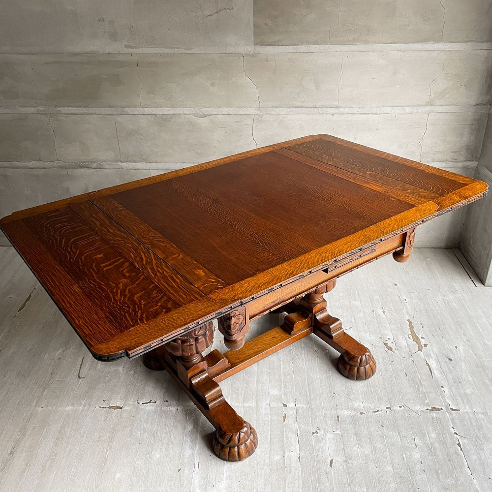 UKアンティーク ドローリーフテーブル ダイニングテーブル 伸長式 オーク材 ビッグバルボスレッグ 英国家具 ビンテージ ~ 英国の気品と機能美 ~