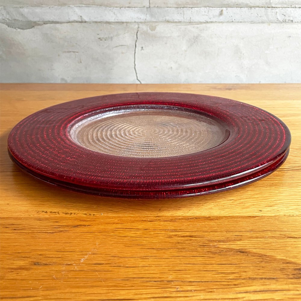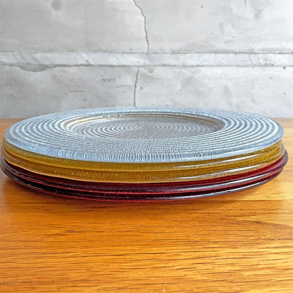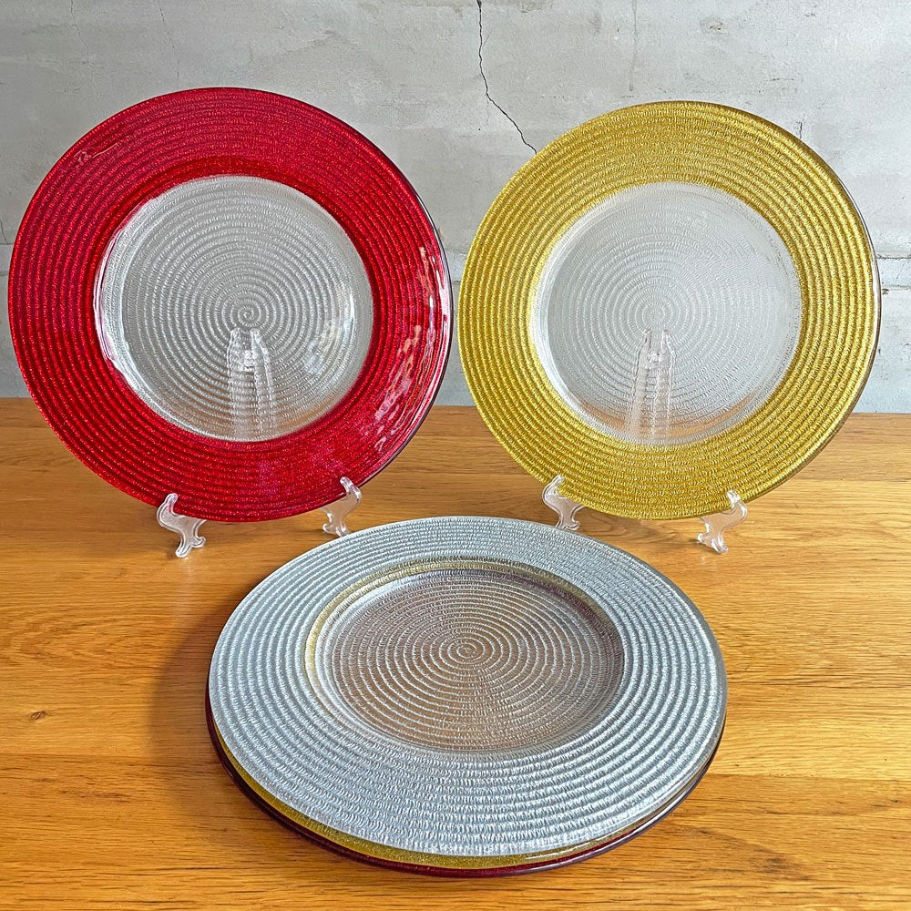 イヴヴ IVV ヘリックス HELIX プレート メインプレート 大皿 34.5cm 5枚セット イタリア チャージャープレート ガラス ハンドメイド レッド イエロー シルバー ♪