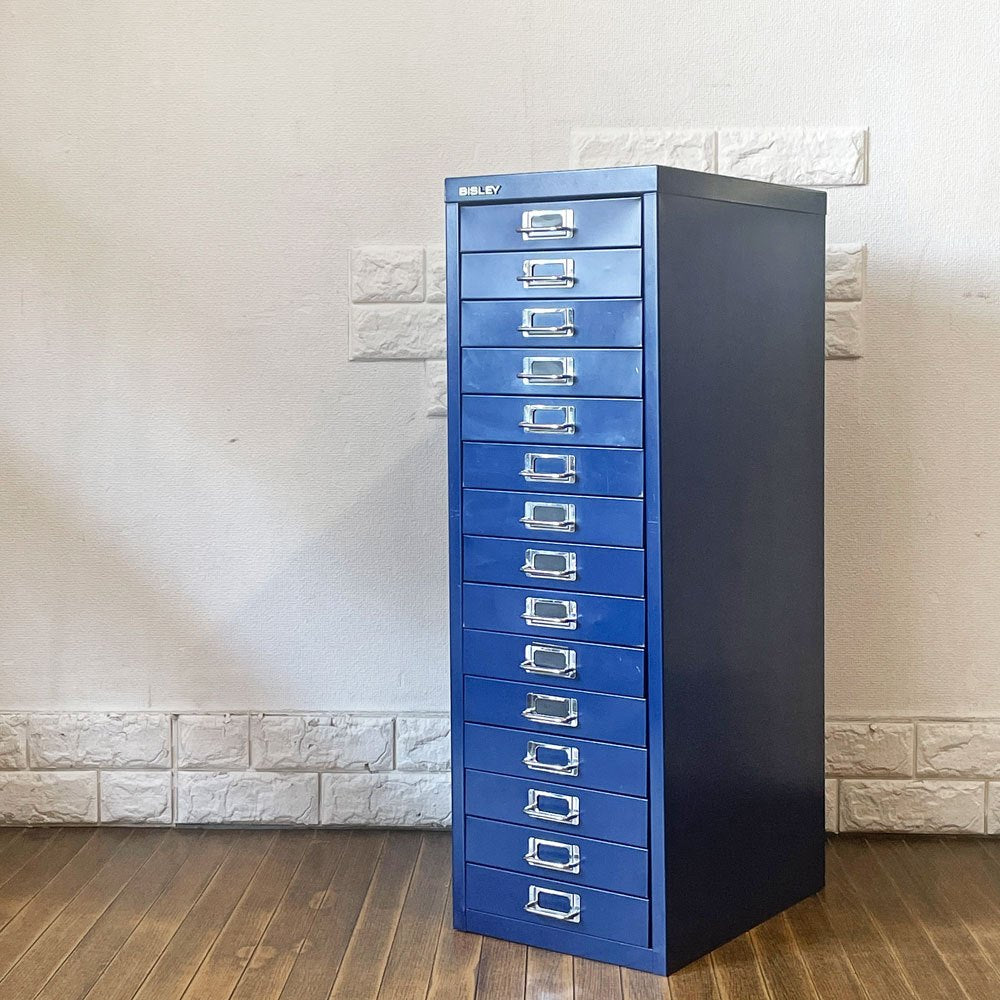 ビスレー BISLEY ベーシック BASIC 39/15 15段ドロワー キャビネット A4サイズ ブルー トレイ×2 付属 ◎