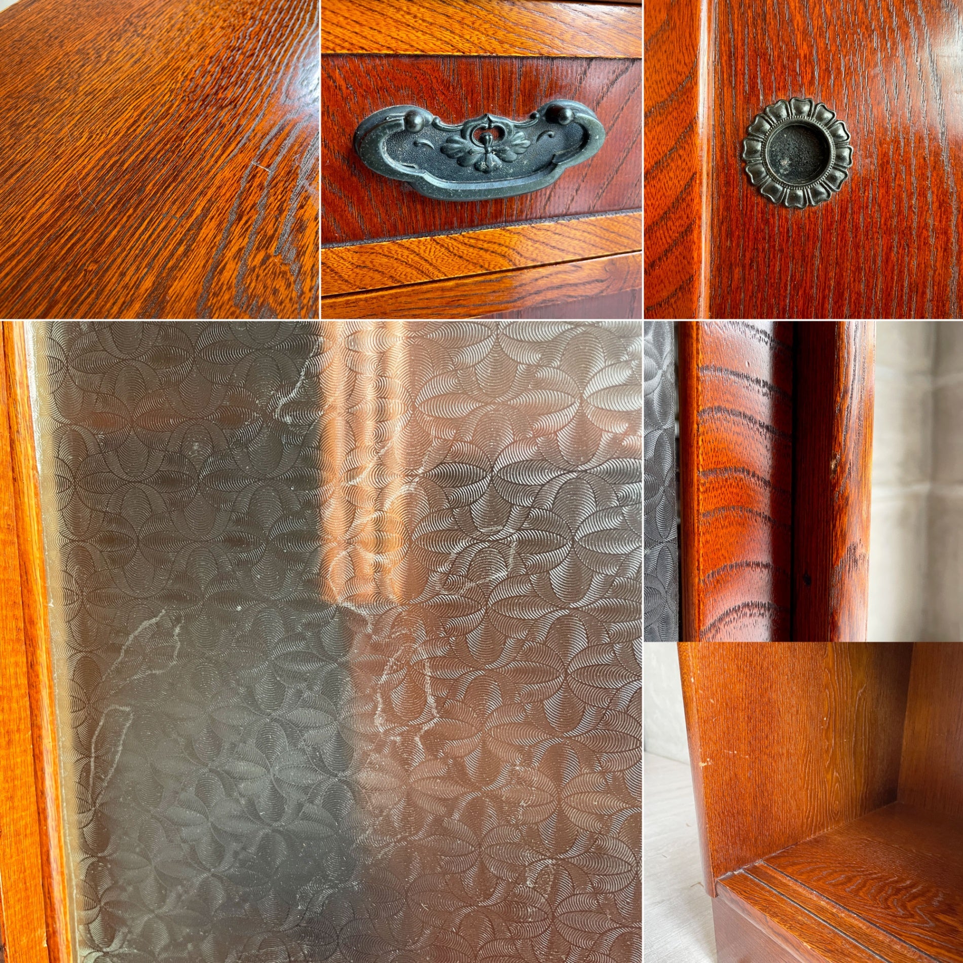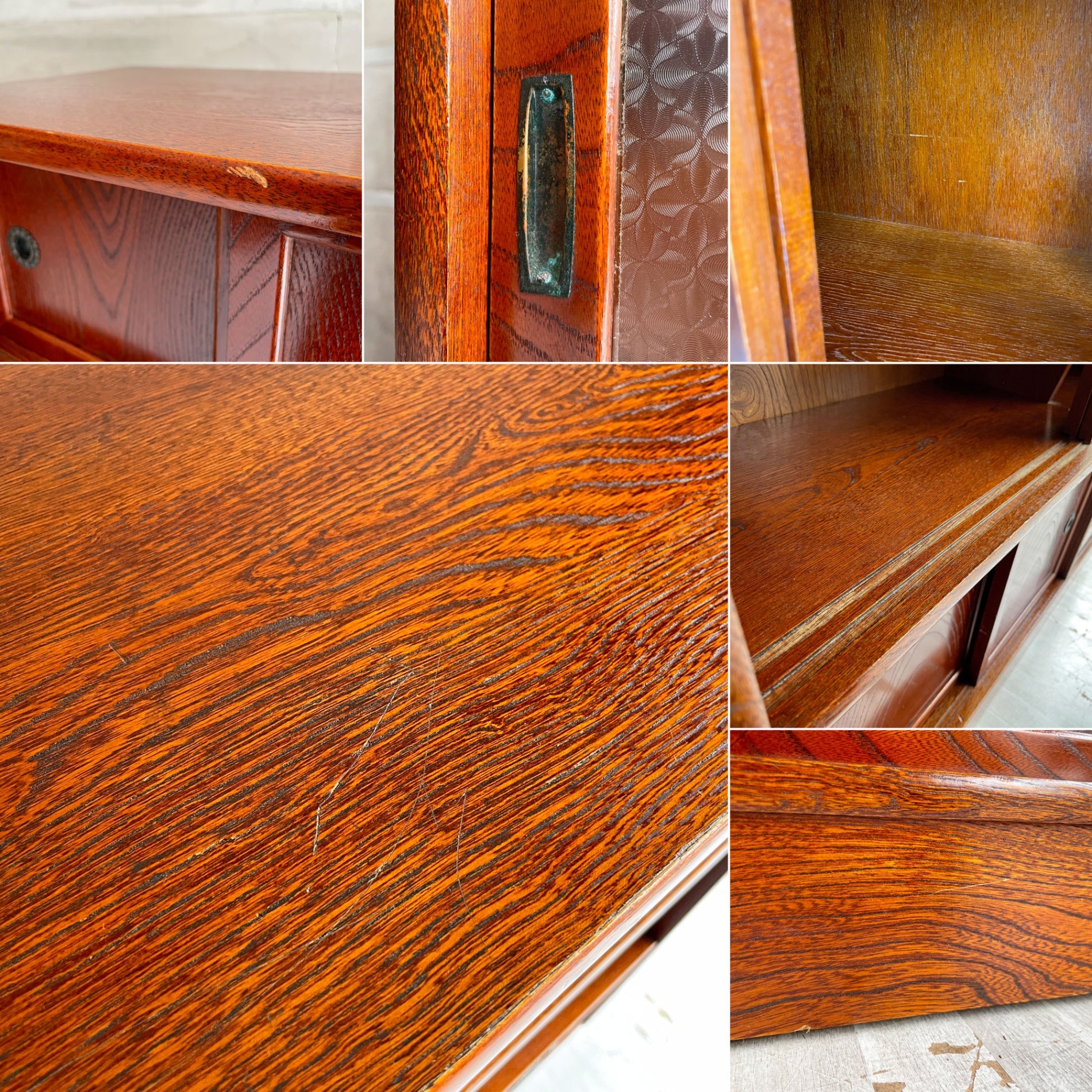 ガラス戸内右側は棚板が一枚、左側は2枚の違い棚となっております。ジャパンビンテージの品だからこその遊び心と手間が盛り込まれた収納スペースとなっています。