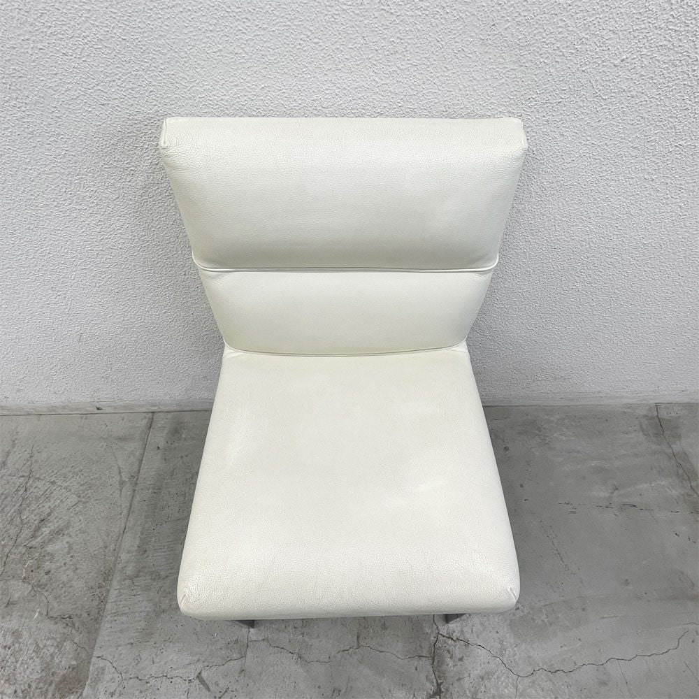 こちらはクッション性のある柔軟なシートを備えたオフホワイトの鞣革張りのダイニングチェア。