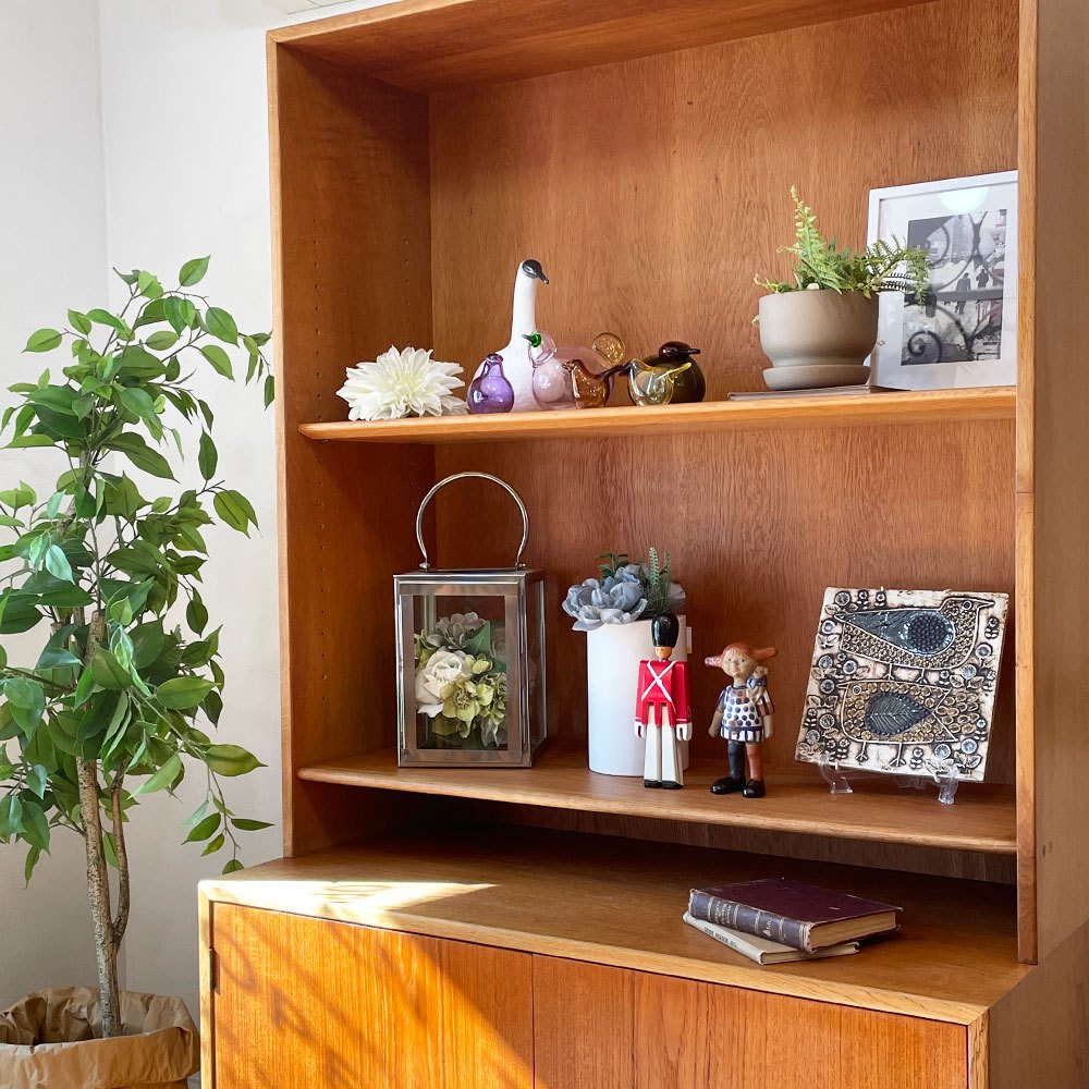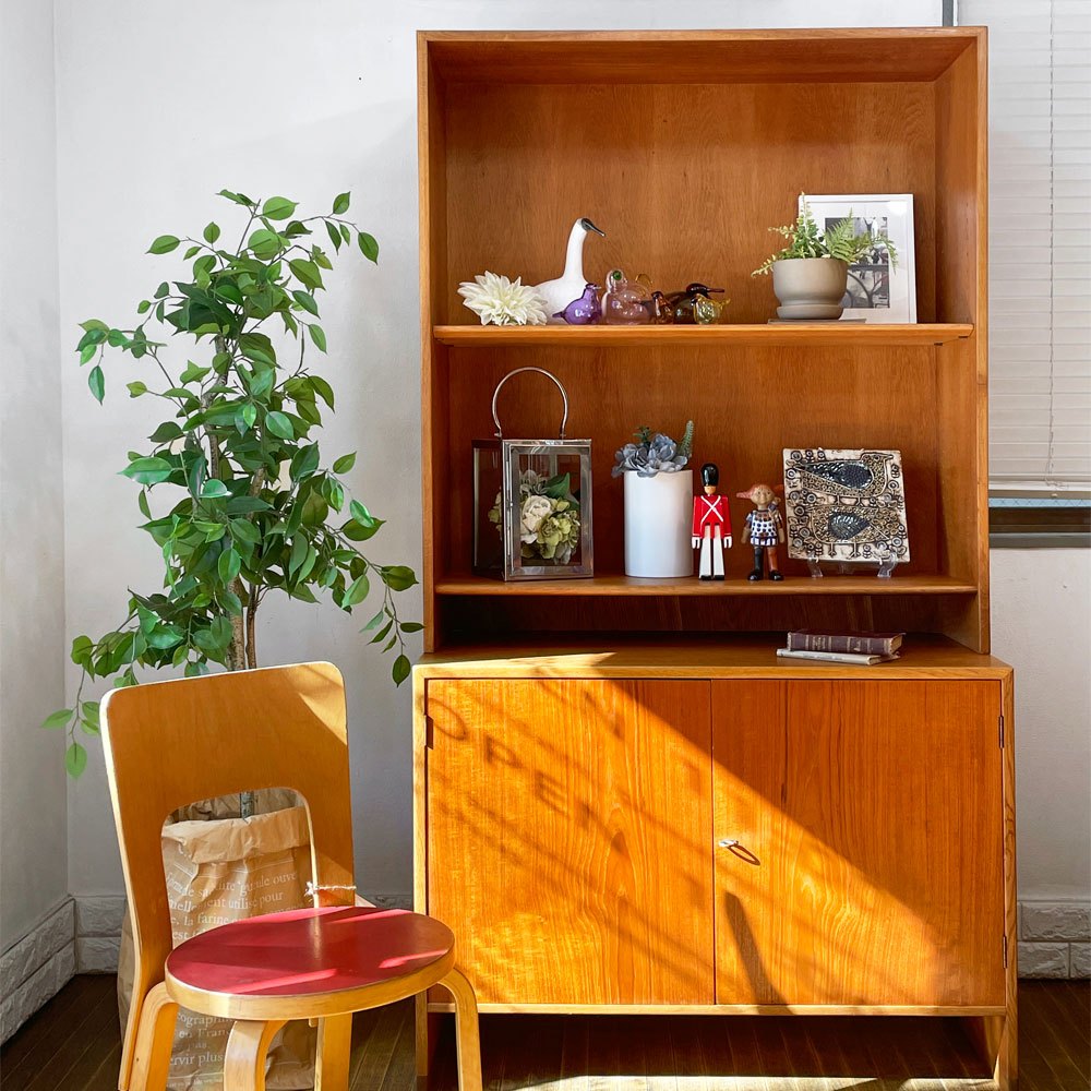RY15 キャビネット・RY5シェルフともにチーク材とオーク材で構成され、異なる木色がアクセントなり、北欧らしい温かみ溢れるナチュラルで優し風合いも魅力です。
