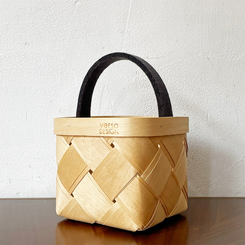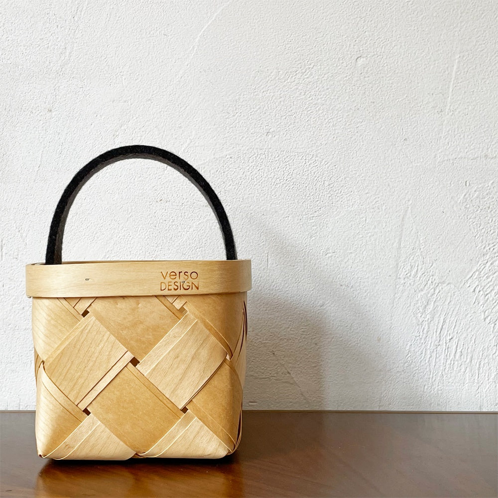 ベルソデザイン Verso Design ラストゥ LASTU スクエアバスケット S 白樺材 フェルトハンドル ブラック フィンランド 北欧雑貨 定価¥22,000- ★