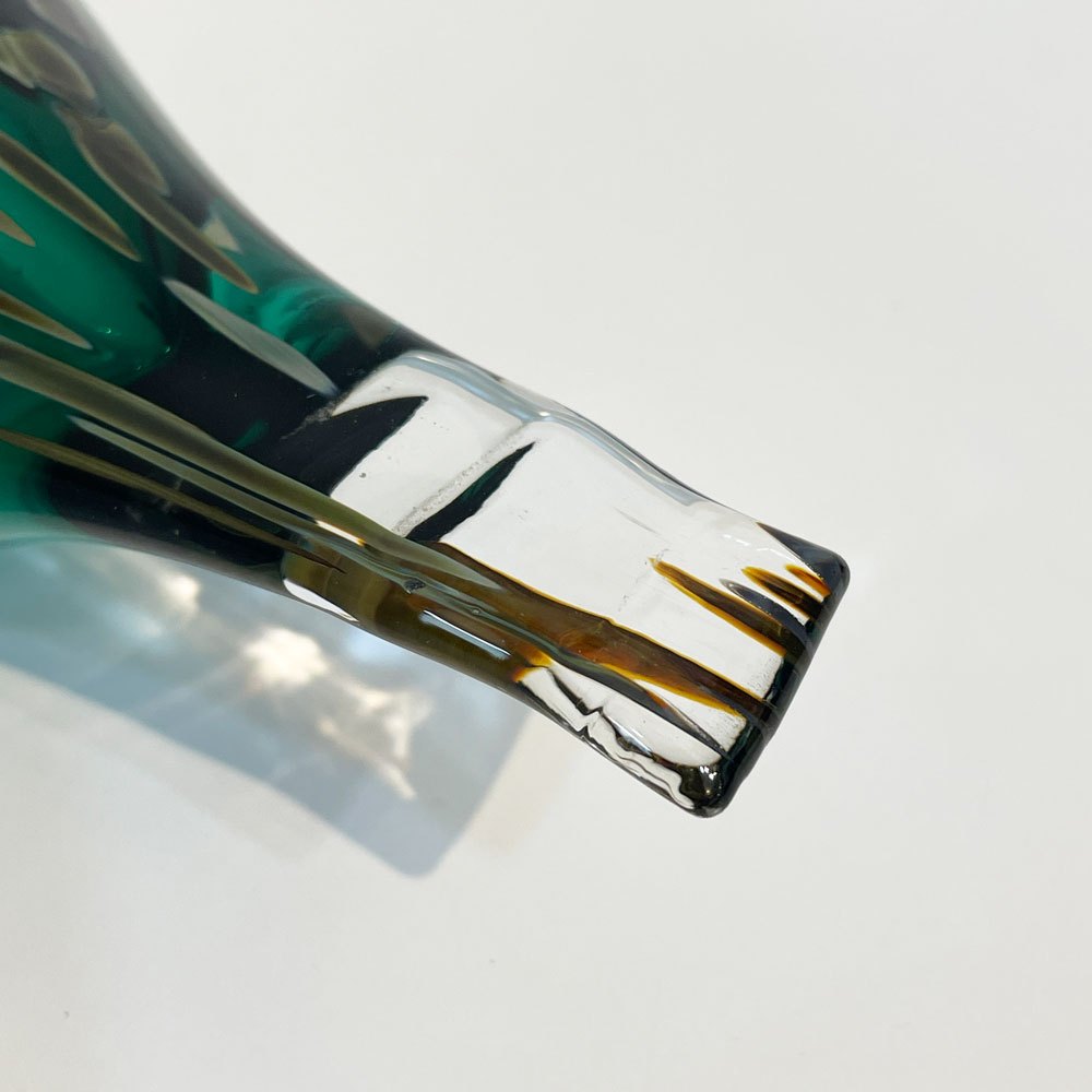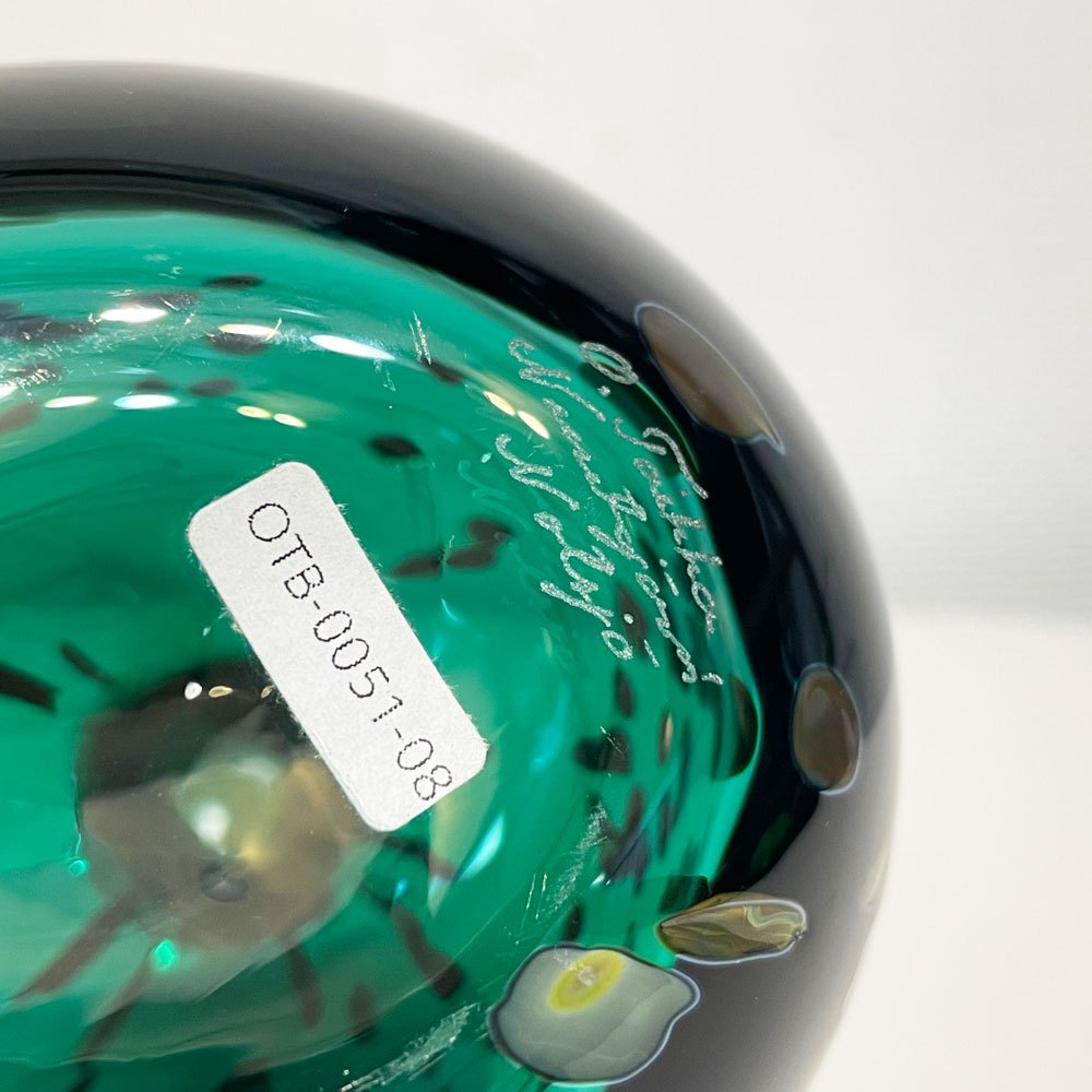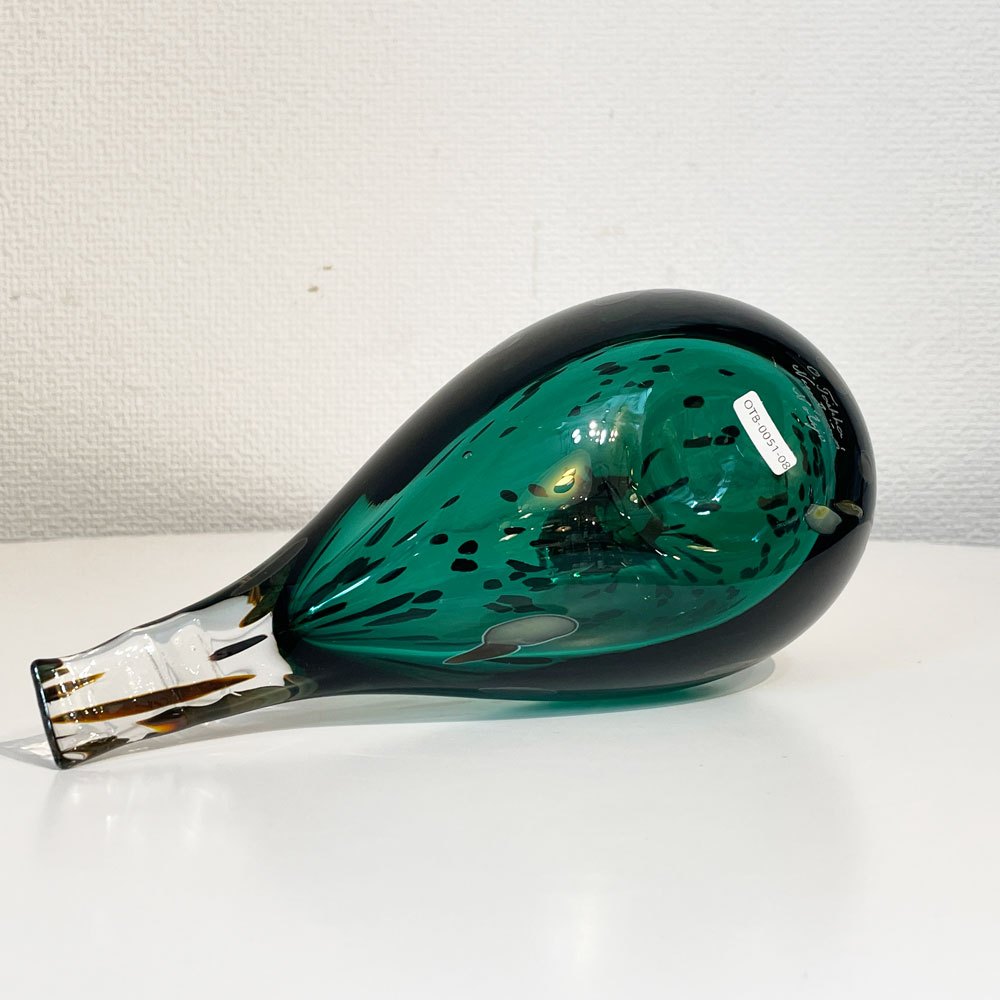 展示・保管に伴う擦れや傷がございます。また、首元に線傷のようなものがございますが、製造時の焼き戻りによる、やや滑らかな線のように感じます。製造時に出来たと思われるガラスの揺らぎや凹み、気泡等がございますが、いずれも手作りガラス特有の風合いとしてお楽しみくださいませ。 裏面には細かな傷が見受けられますが、死角となるため、目立つものではございません。その他、大きく目立つダメージは無く、今後もオブジェとして十分にお楽しみ頂けるコンディションを保っております。