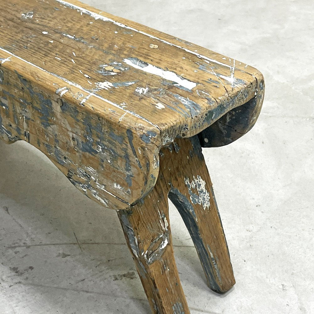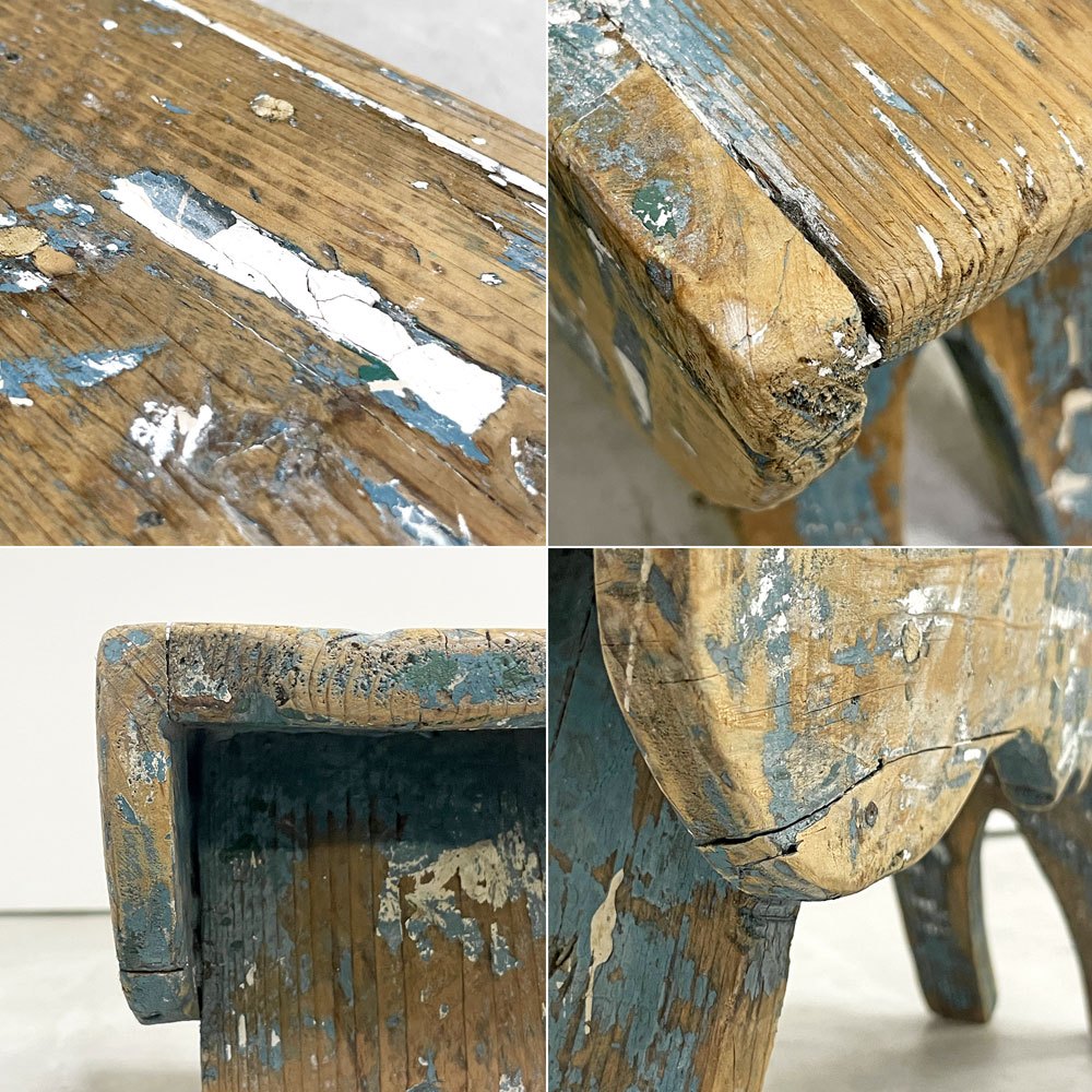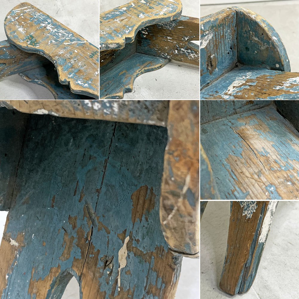 UKビンテージ UK Vintage ミルキングスツール ウッドスツール パイン材 ペインテッド ブルー シャビーシック ●
