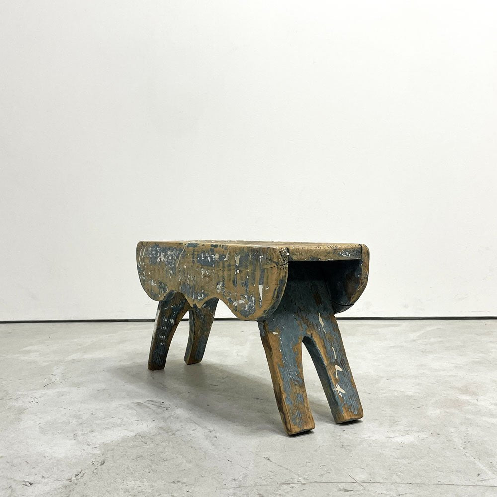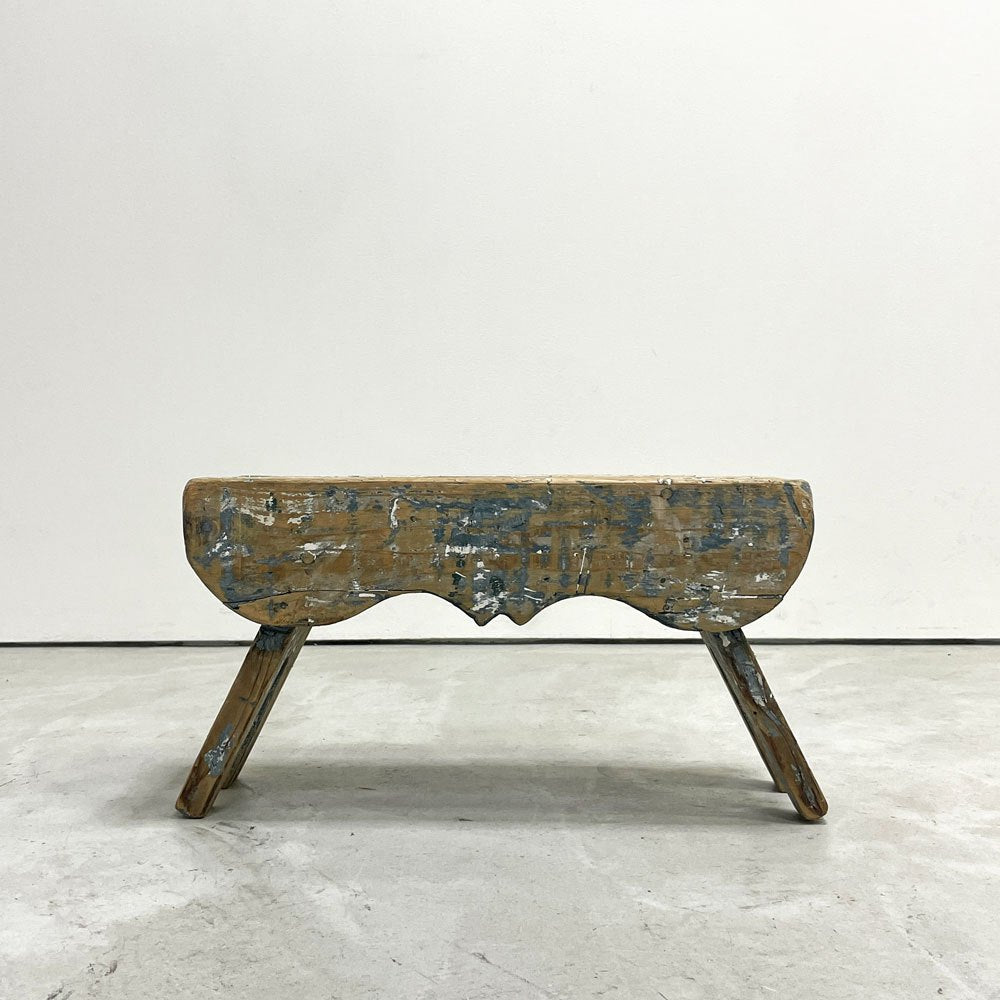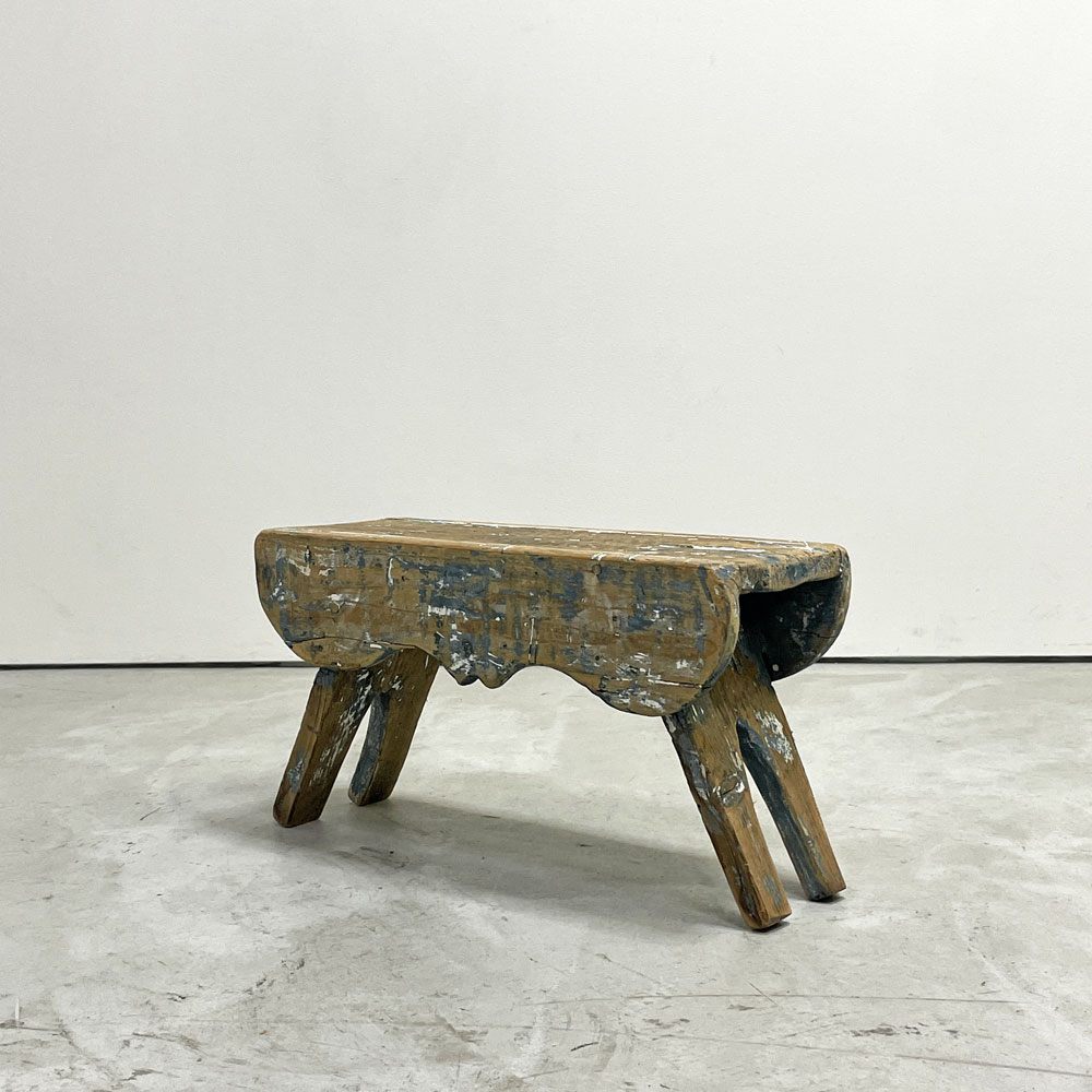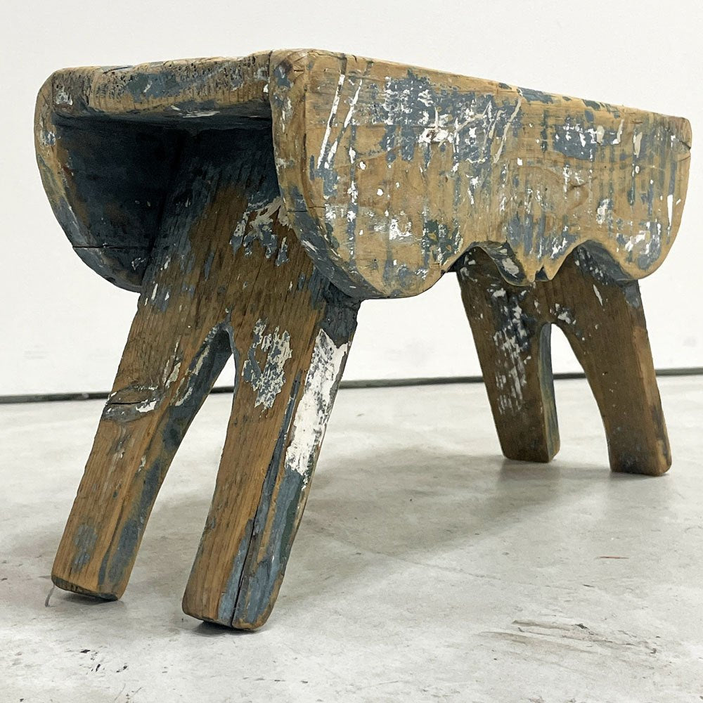 UKビンテージ UK Vintage ミルキングスツール ウッドスツール パイン材 ペインテッド ブルー シャビーシック ●