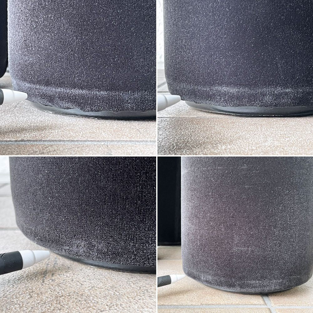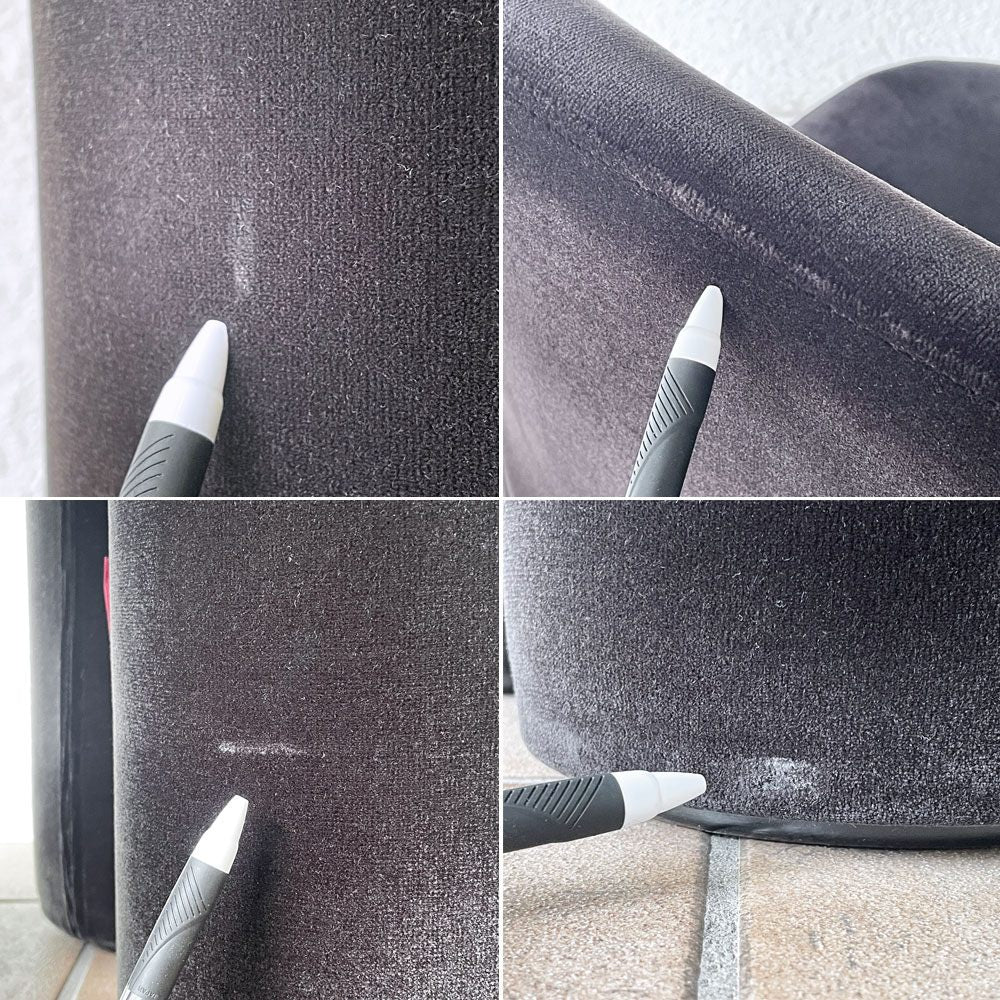 使用に伴う擦れ傷の他、背もたれ後ろ側の小さな染み、脚先を中心とした毛羽立ち等はございますが、いずれも大きく目立つものではございません。目立ったヤケや色褪せなどは感じられず、グラつき等ご使用に問題となるダメージの見られない、USED品として概ね良好なコンディションを保っております。今後ともデザインを楽しみながら気持ちよくお使い頂けます。