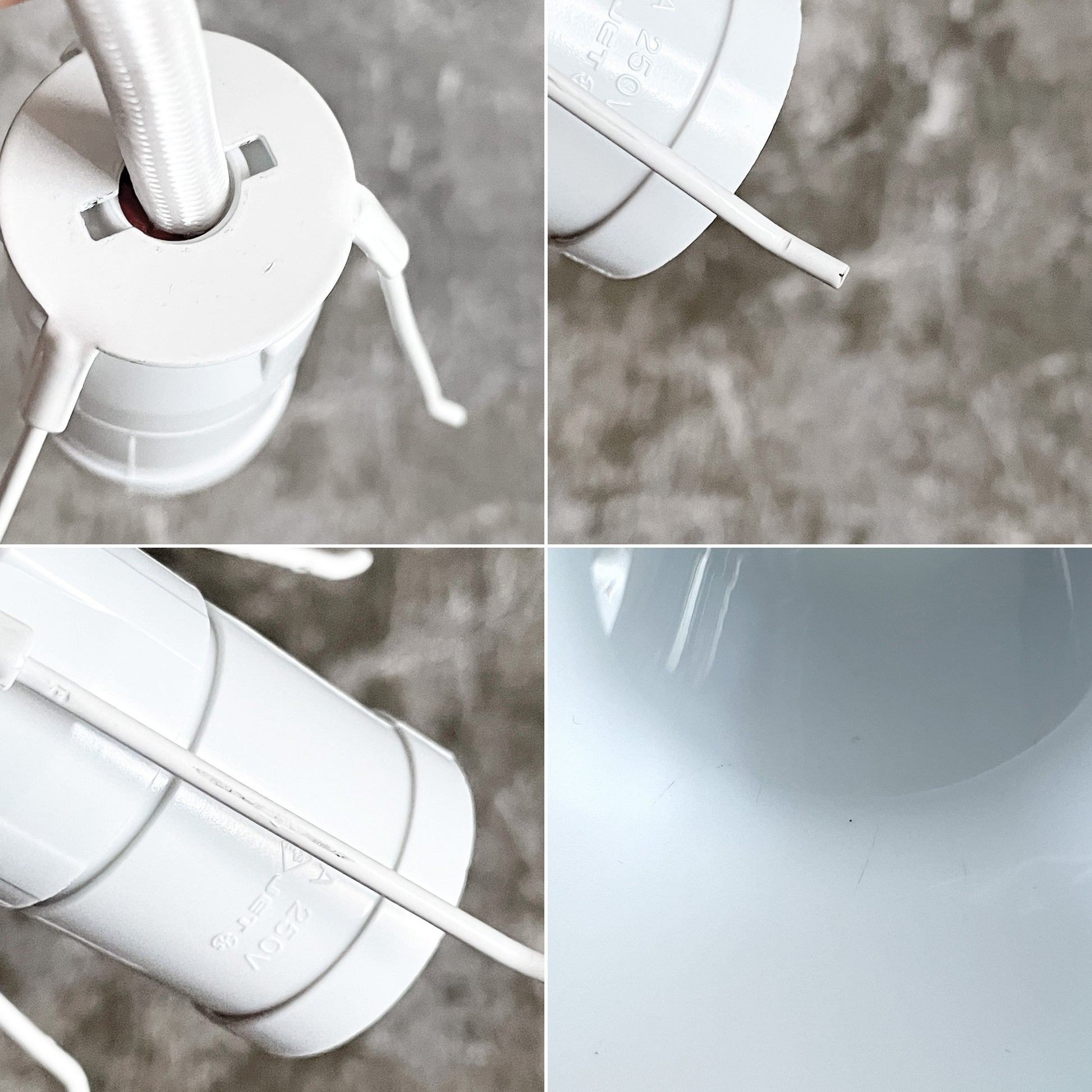 こちらはビンテージのお品物になります。使用に伴い、細かな擦れや傷、取りきれない黒ずみが見受けられる他、ガラスシェードに製造時の小さな気泡やゆらぎ、黒点等はございますが、いずれも大きく目立つものではございません。 ビンテージ品として引き続き雰囲気を楽しみながらお使い頂ける、概ね良好なコンディションを保っております。