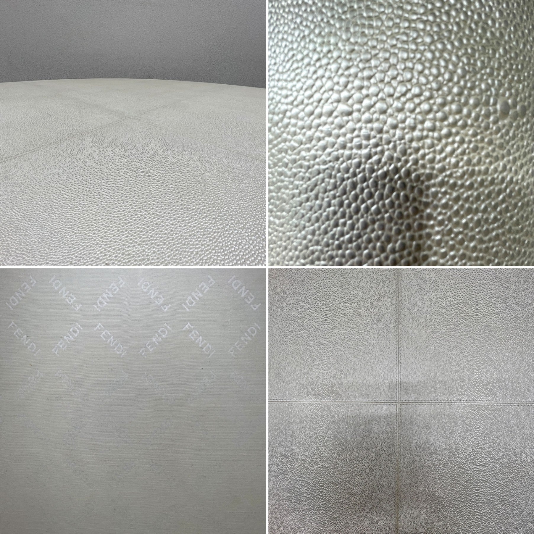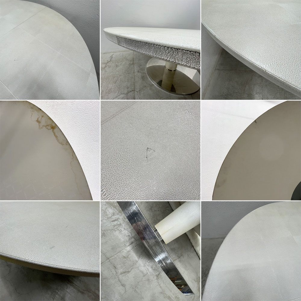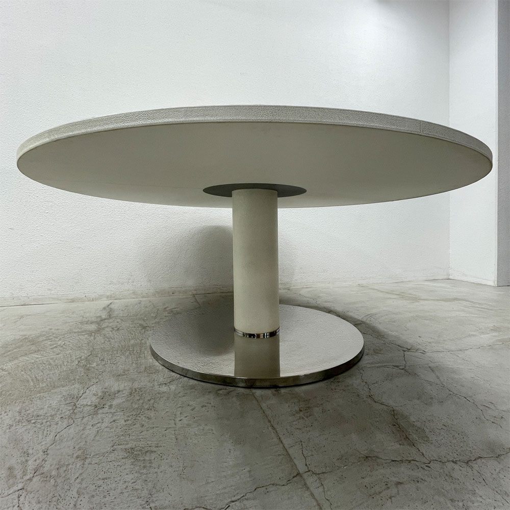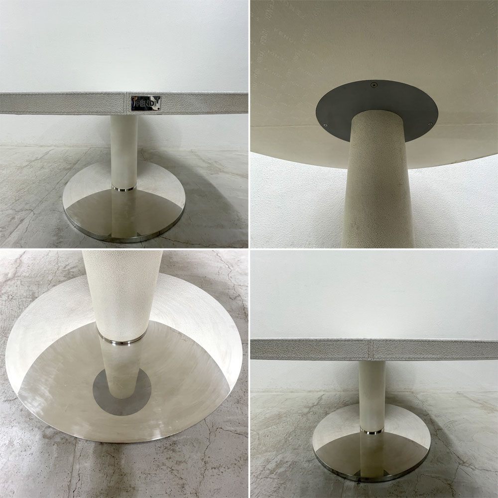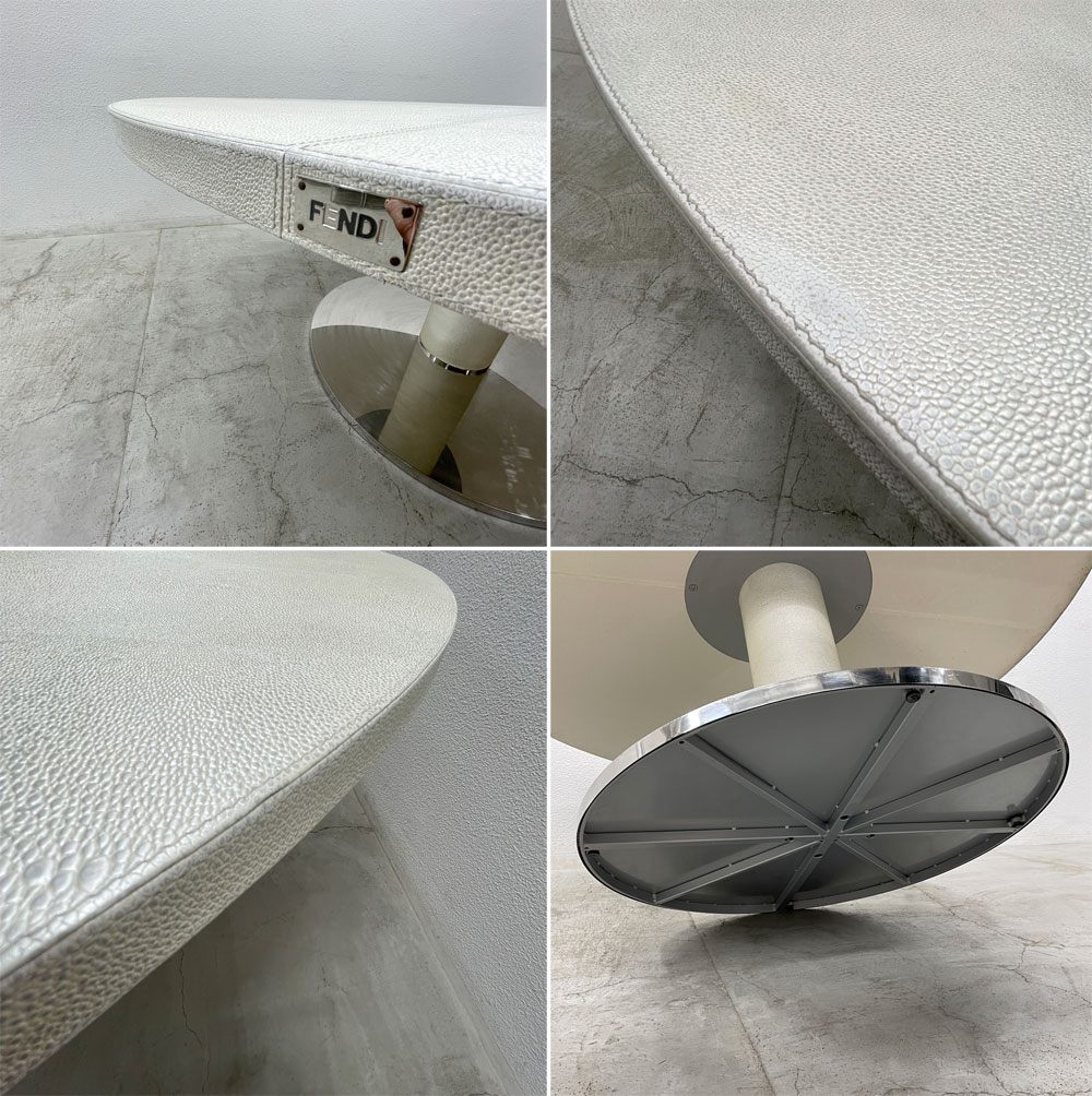 フェンディ・カーサ FENDI CASA ベルニーニ Bernini ラウンドダイニングテーブル 牛革リザード型押し パールホワイト 参考価格 約80-120万の品 〓