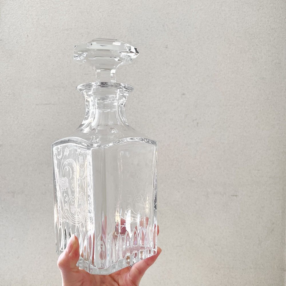 バカラ Baccarat パルメ Parme ウィスキーデカンタ エッチング 鳥 H24cm クリスタルガラス フランス 廃番 ◎