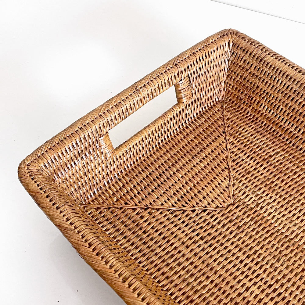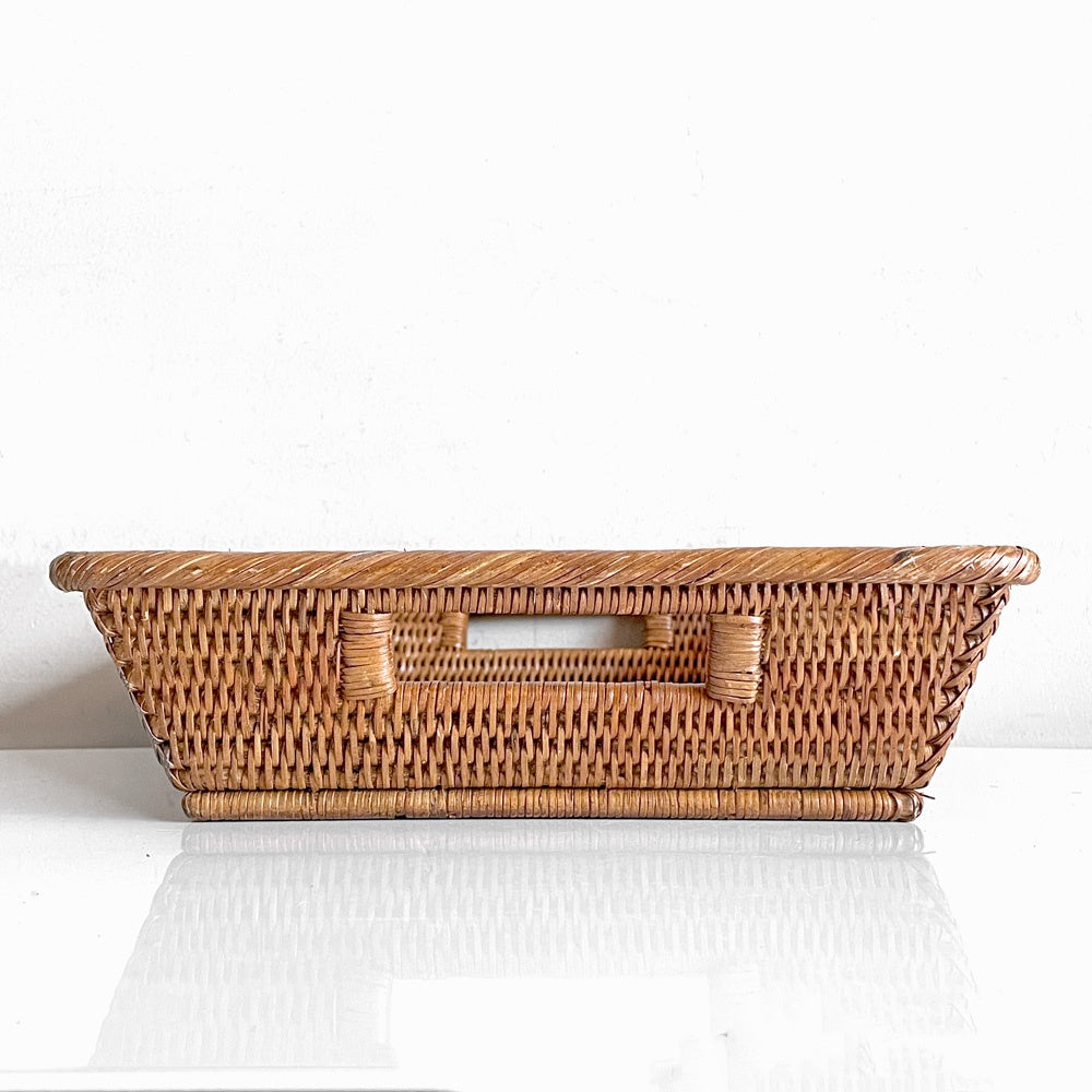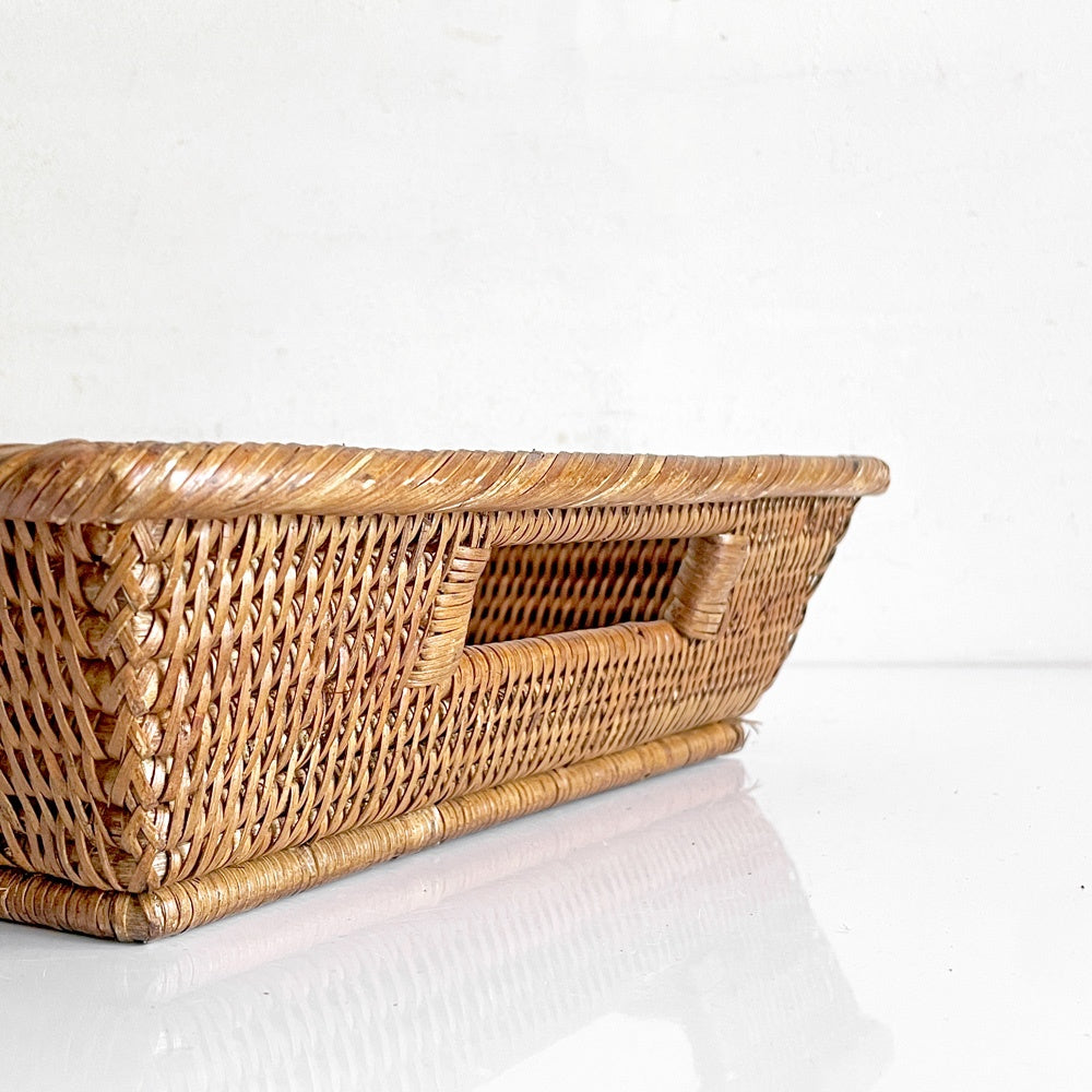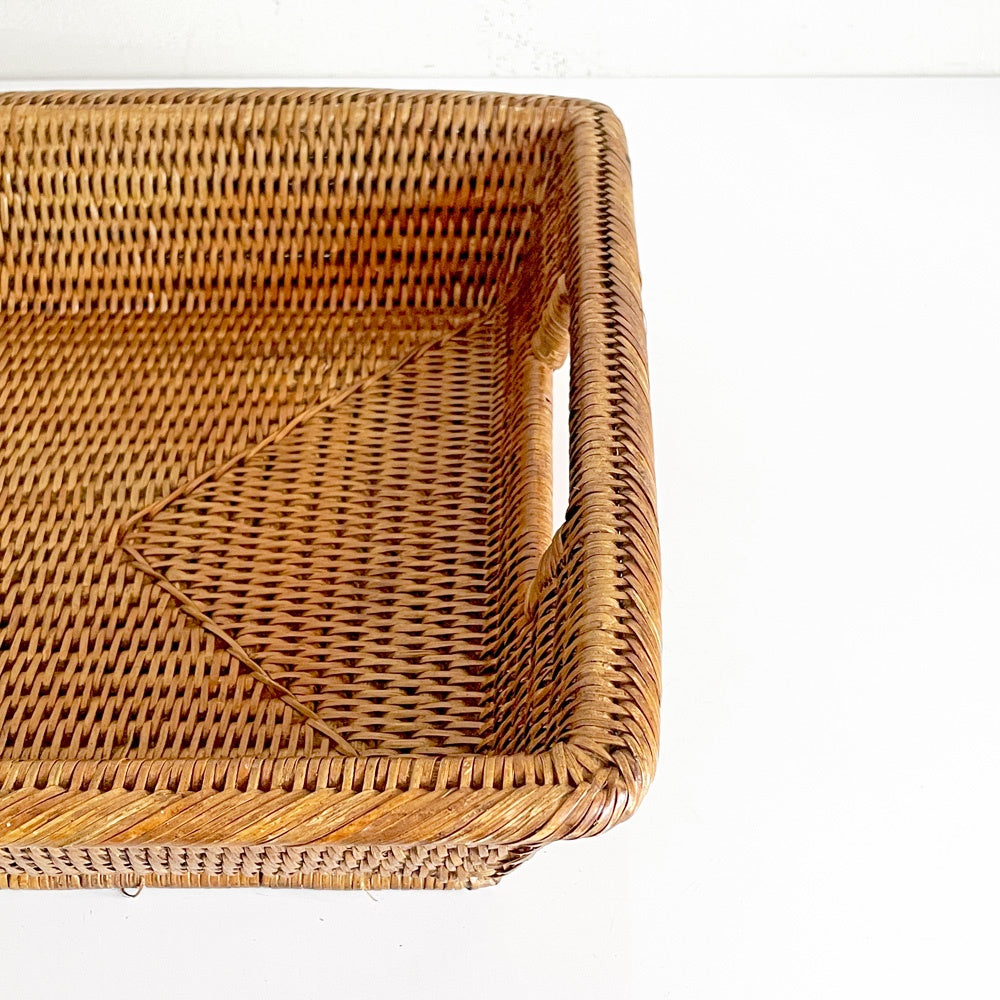 バオルジィ Baolgi ラタンバスケット スクエア トレイ 取っ手付き ハンドメイド フランス A ■