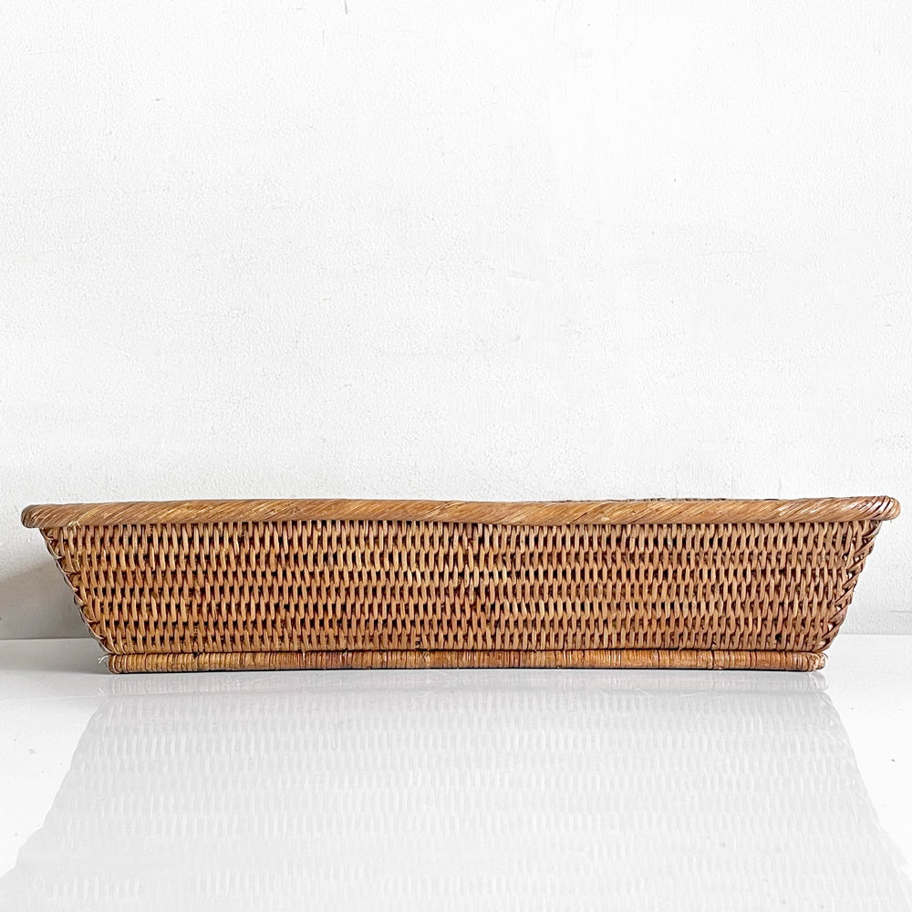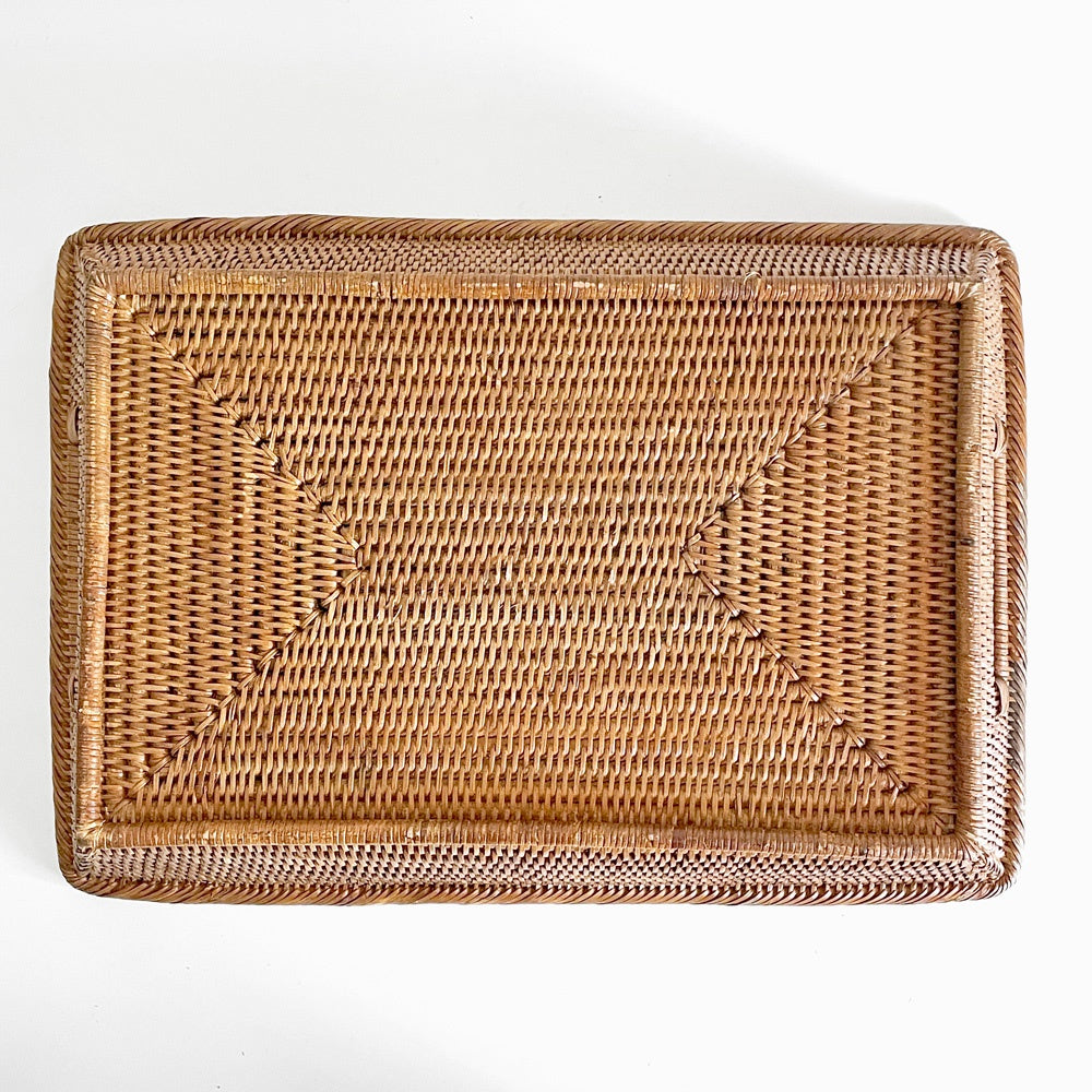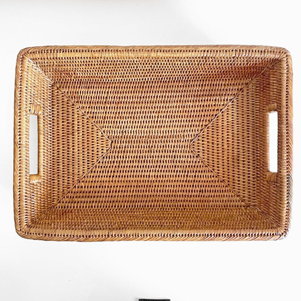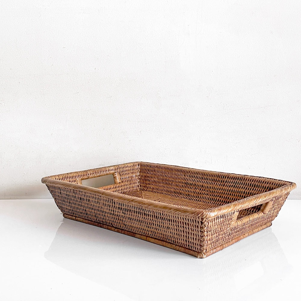 バオルジィ Baolgi ラタンバスケット スクエア トレイ 取っ手付き ハンドメイド フランス A ■
