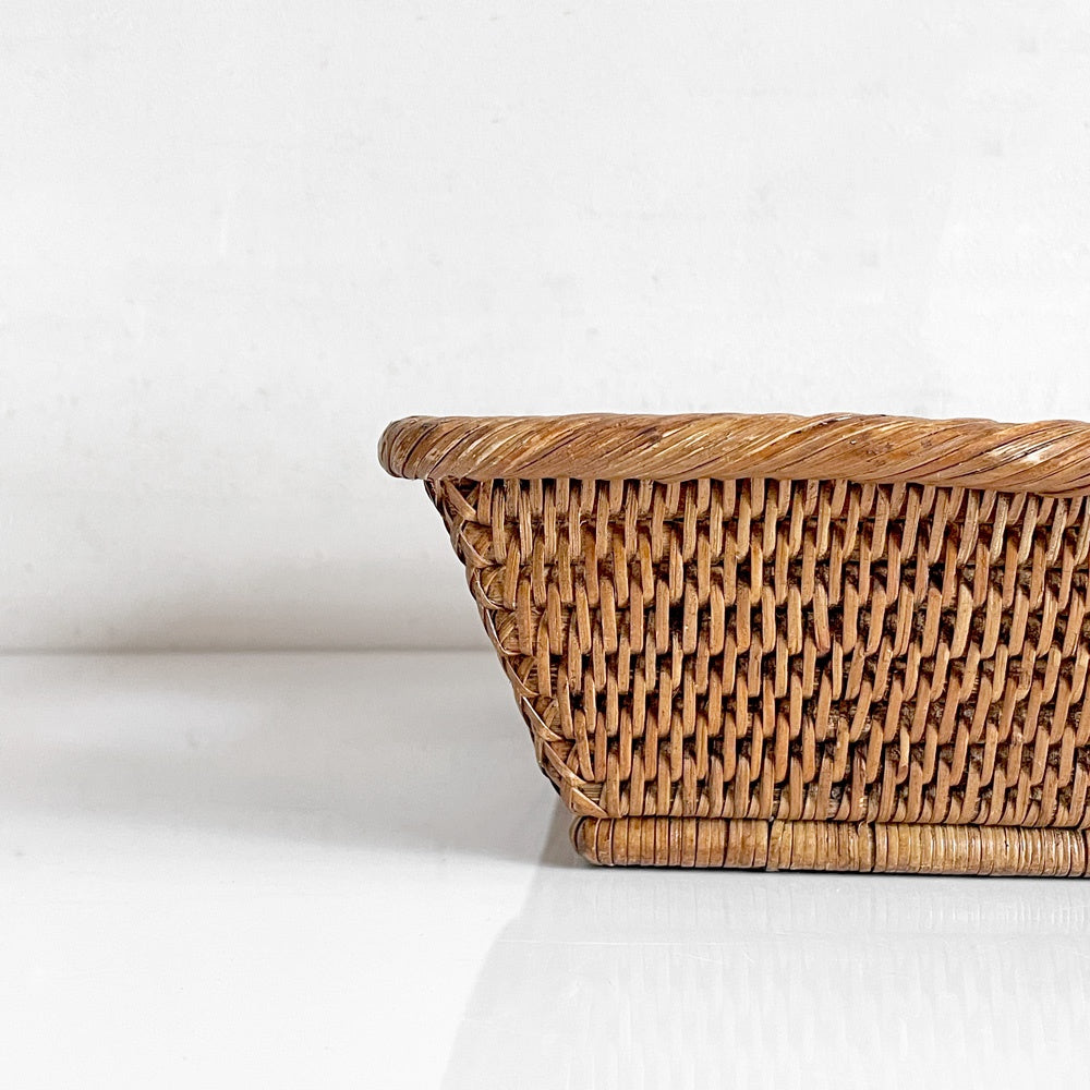 丁寧に編まれたラタンのバスケットは、そのデザイン性のみならず、しなやかで充分な強度があるのが特徴です。