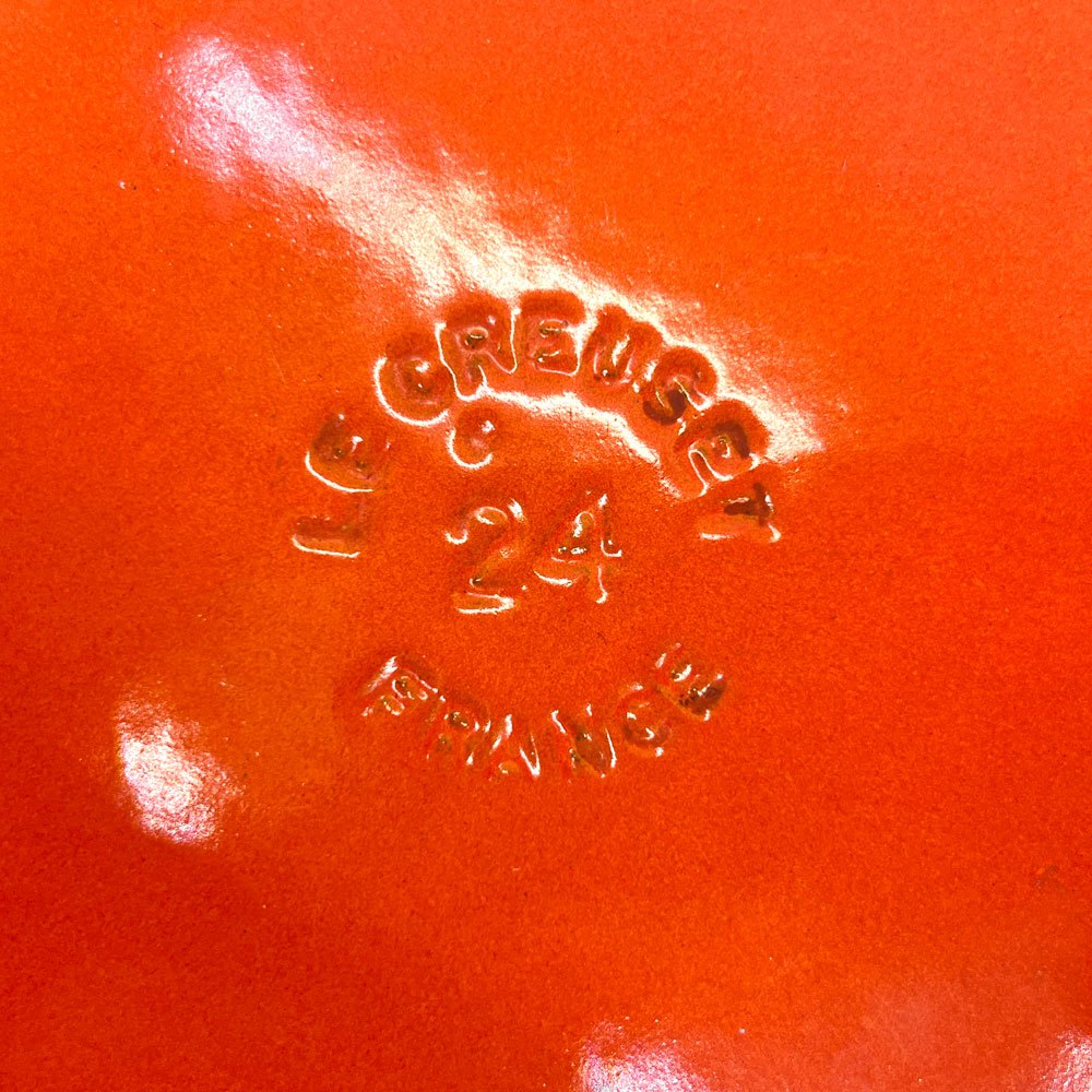 ルクルーゼ LE CREUSET ココットロンド 両手鍋 24cm オレンジ 替えツマミ付き 鋳物 フランス ●