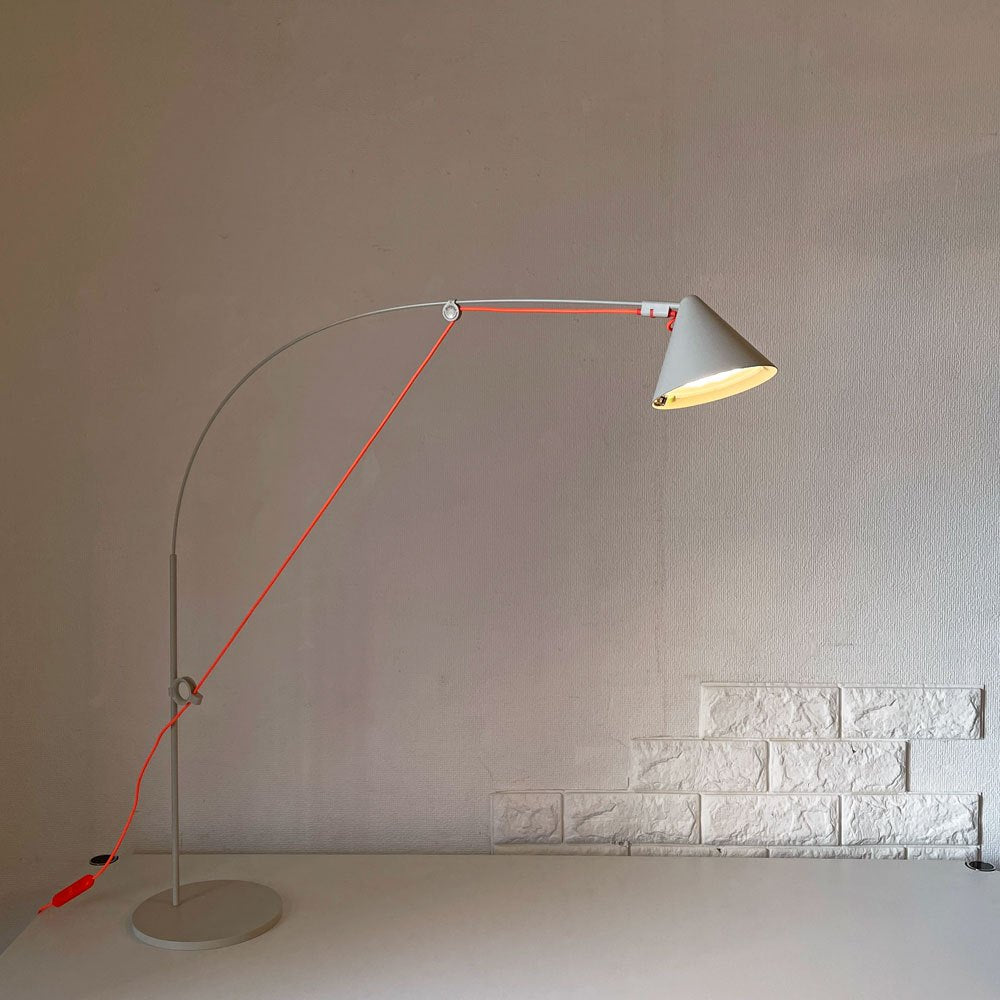 従来のアームライトの様な関節やジョイントを無くし、柔軟で丈夫なグラスファイバーを使用したロッドと電源ケーブルの張力を利用。光の向きを自由に調整可能です。素材探求に長けたデザイナーの個性が発揮された特許デザインです。