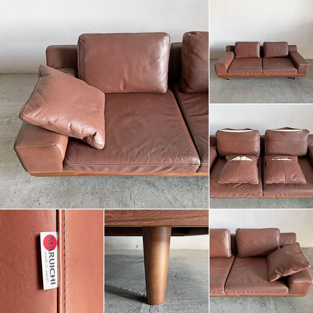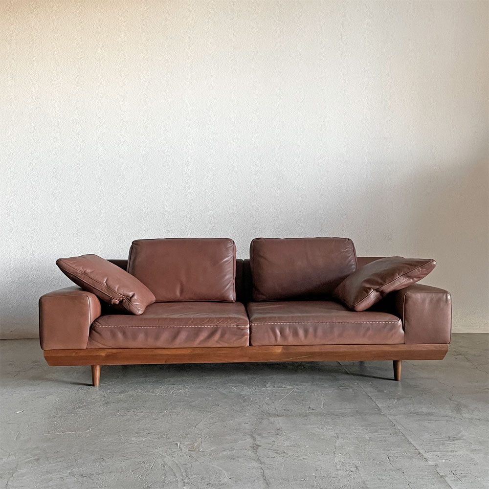 マルイチセーリング MARUICHI SELLING アルバ ALBA 2.5人掛けソファ W194cm ウォールナット材 本革 ブラウンレザー 脚付 定価¥765,600-以上 〓