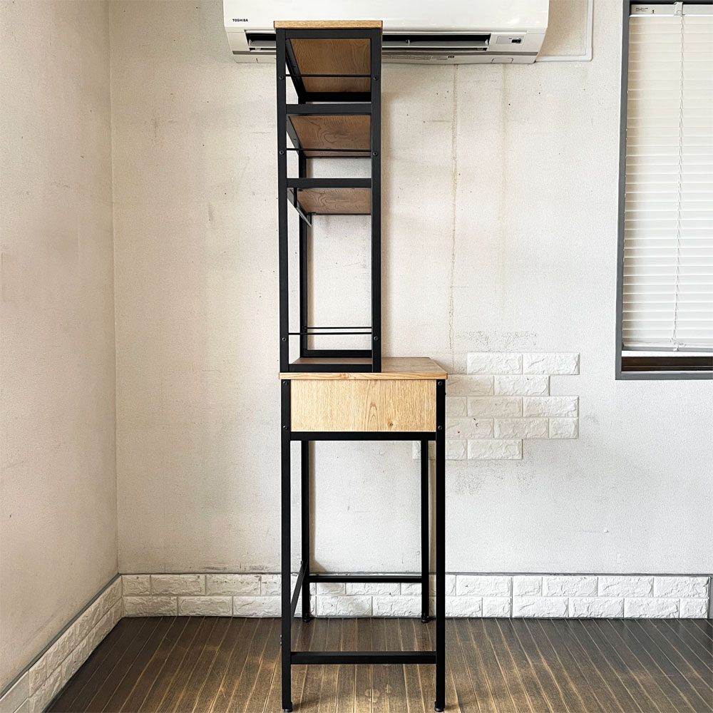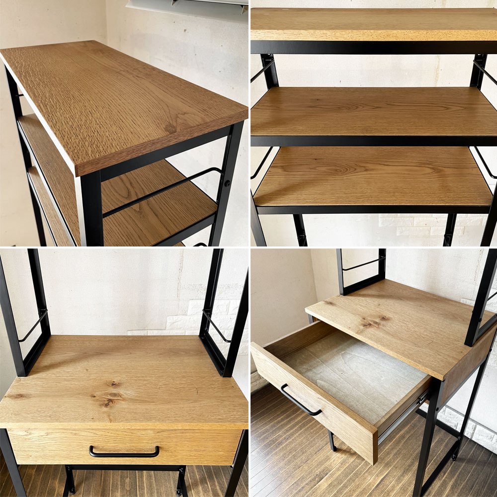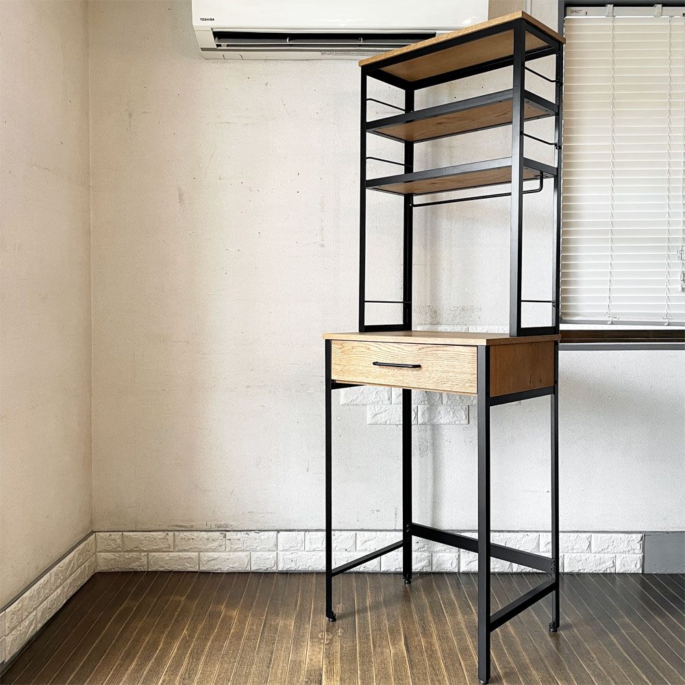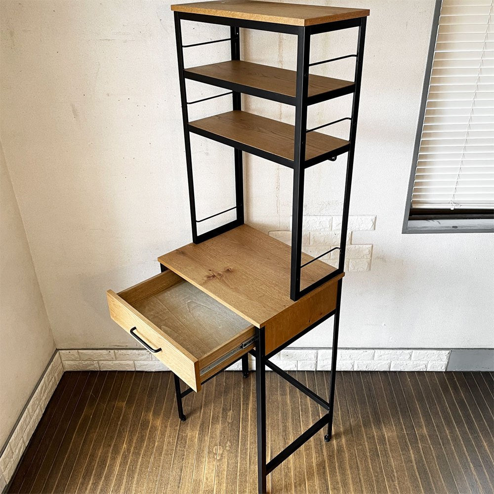 オーク材とスチールフレームの異素材ミックスによるすっきりとした印象の1台。幅62cmのスリムな「620ダスト」は棚収納と中央部の天板、抽斗、ダストボックスなどを収めるのに適したオープンスペースで構成されています。