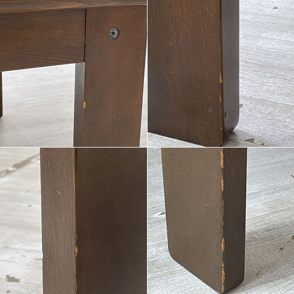経年や使用に伴い全体に傷や擦れ、ペイントロス、ペイント痕、打痕、天板には細かな染み汚れや傷、くすみがございます。