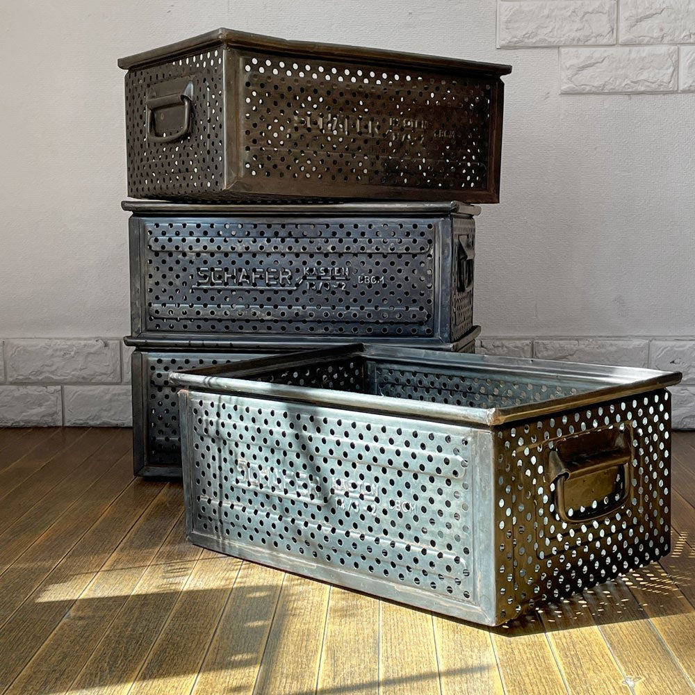 SCHAFER スタッキング ストレージボックス パンチングメタル インダストリアル ドイツビンテージ A ◎