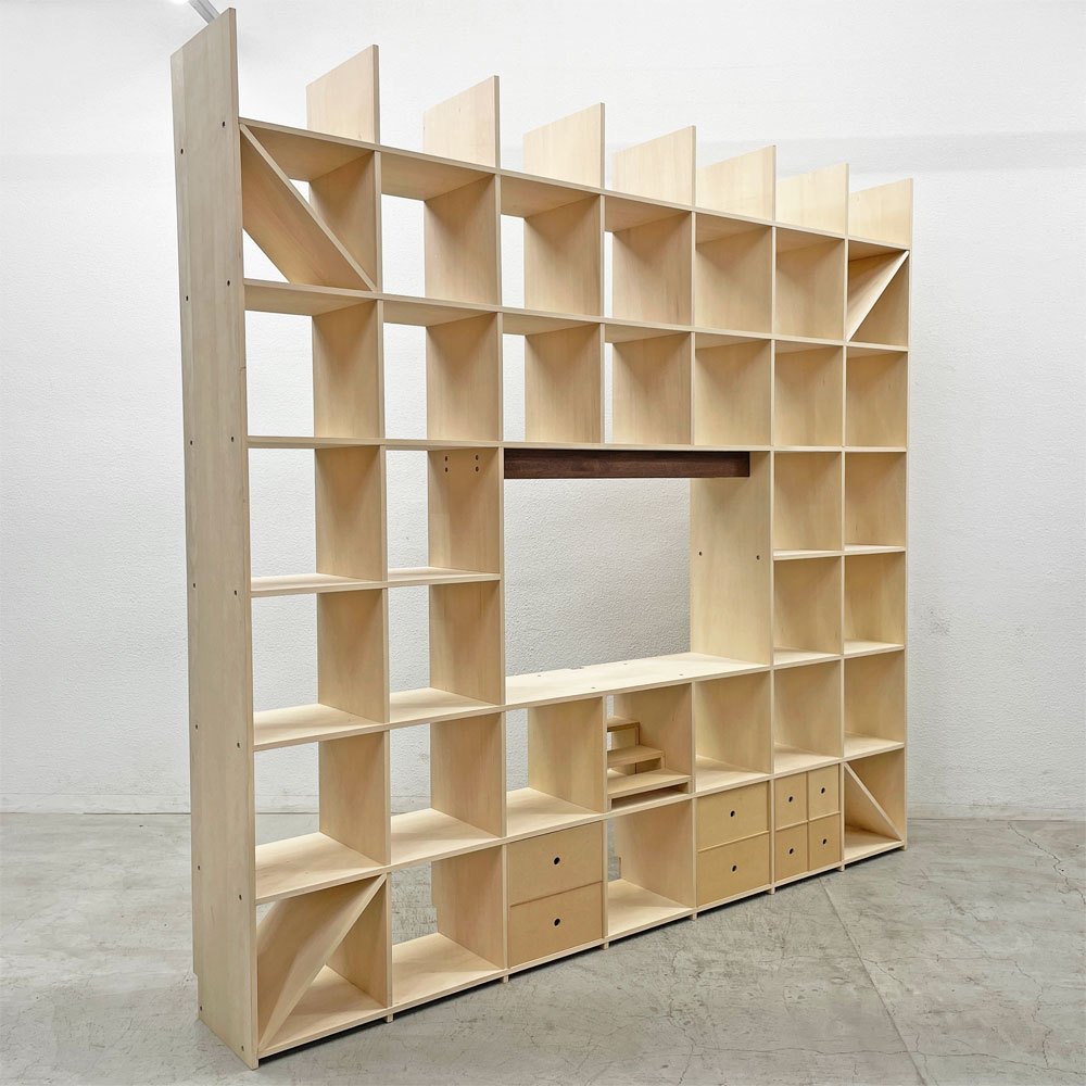 マルゲリータ margherita シェルフ 開口部のある本棚 縦7コマ×横7コマ-223 SHELF-AR-ROOM W240cm 引き出しユニット×3 本棚の中の棚×3個セット 総定価約25万円 ~ミニマルなデザインと圧巻の壁面~