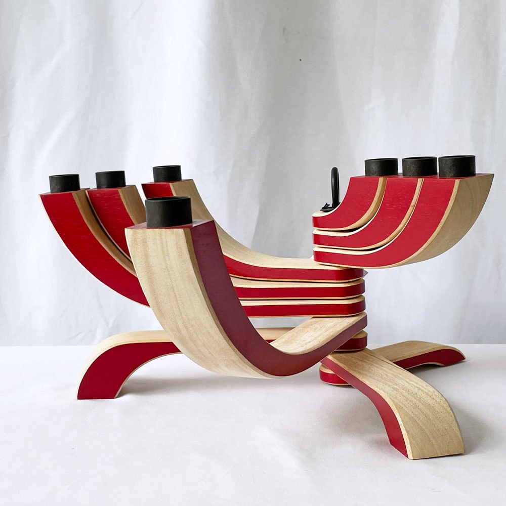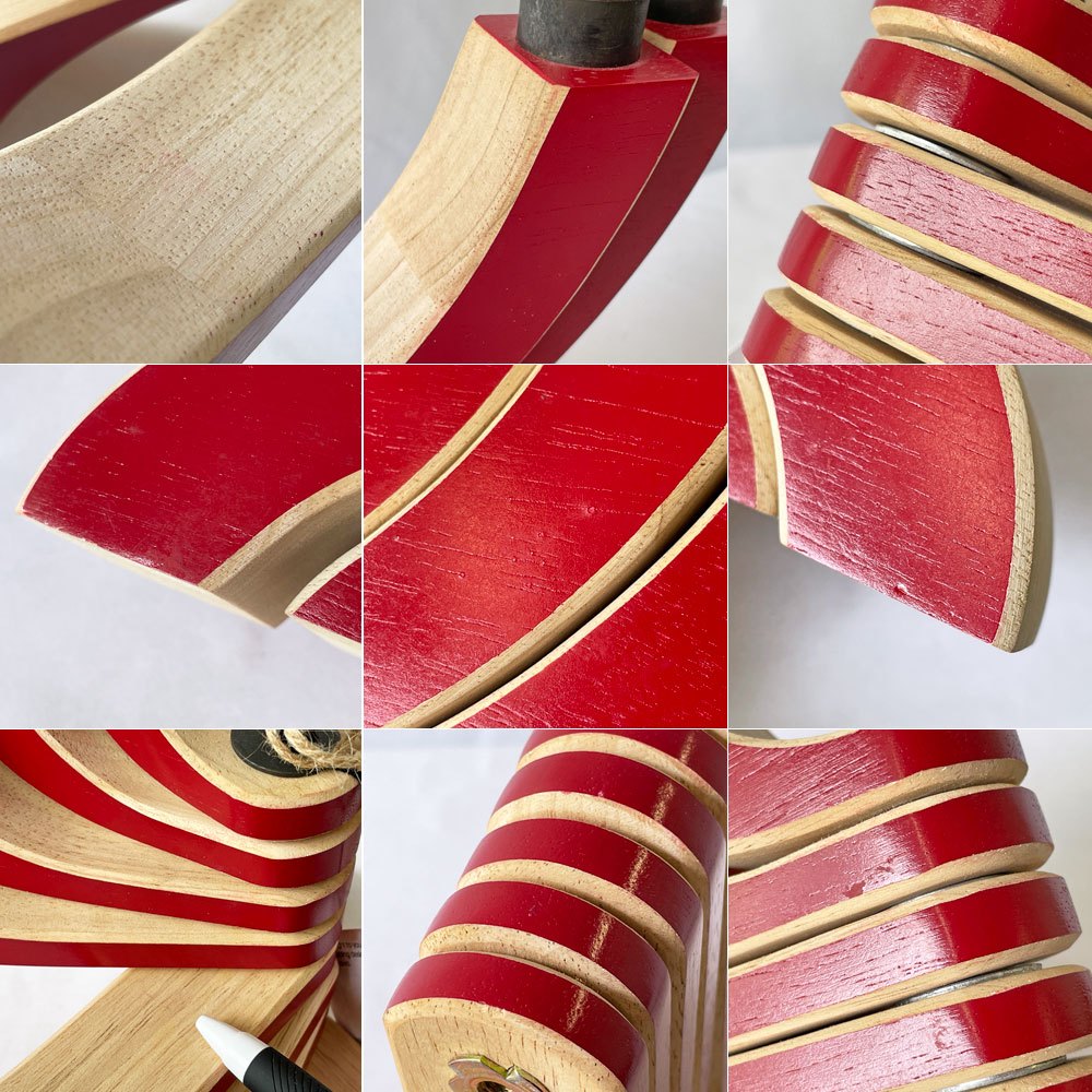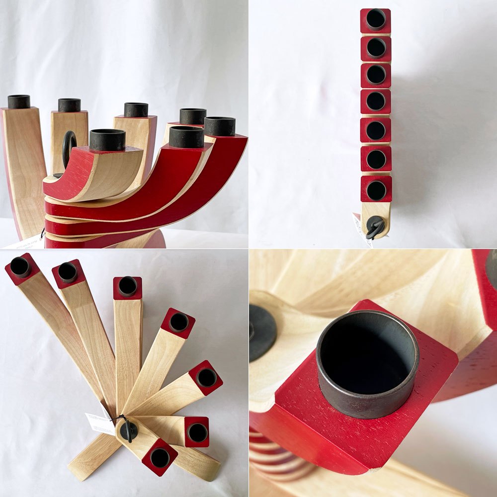 木材の持つ暖かみや、コトンとした質感を見事に際立たせたデザインとなっており、また脚部を含めたそれぞれのアームが自由自在に動かせる事で、設置する場所やシーンに応じてフォルムを変化させながらお楽しみいただけます。