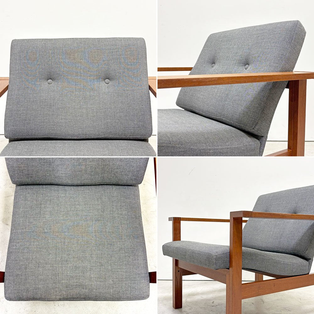 フランス&サン France & Søn モジュラインソファ Moduline Sofa ラウンジチェア 1Pソファ チーク材 グレーファブリック デンマークビンテージ ●