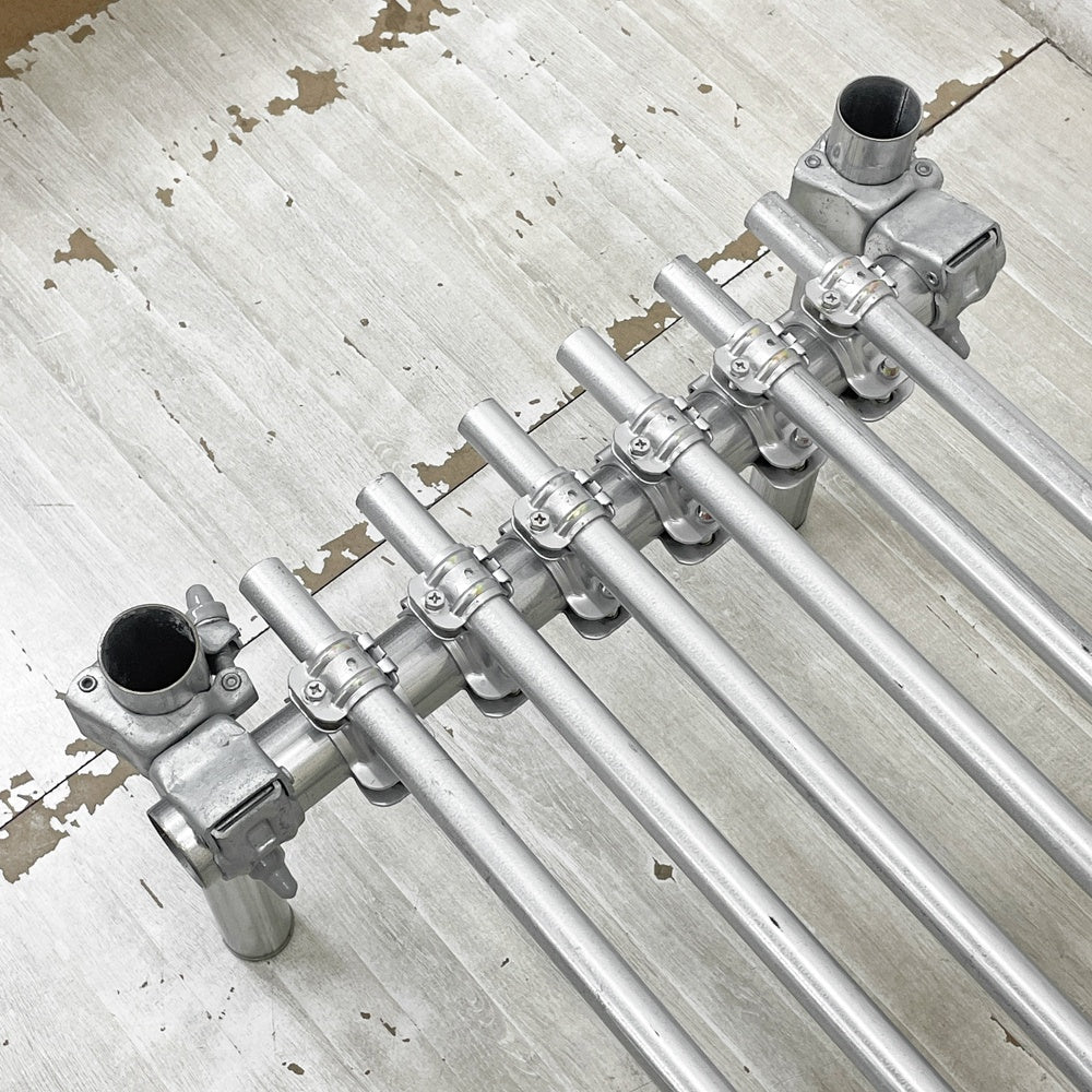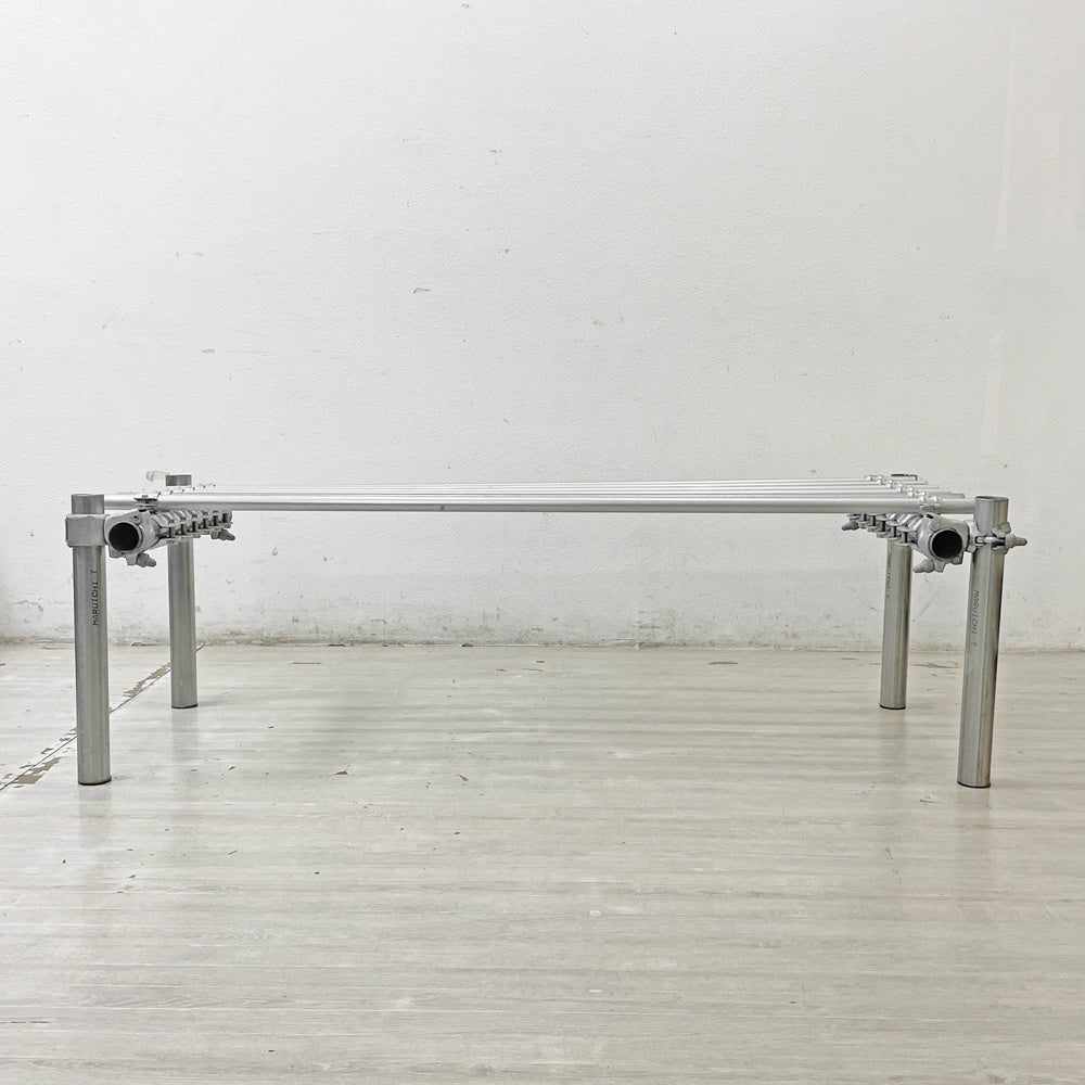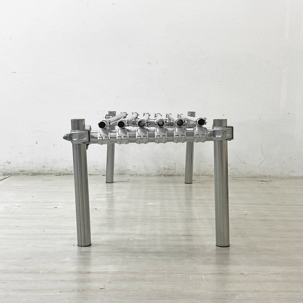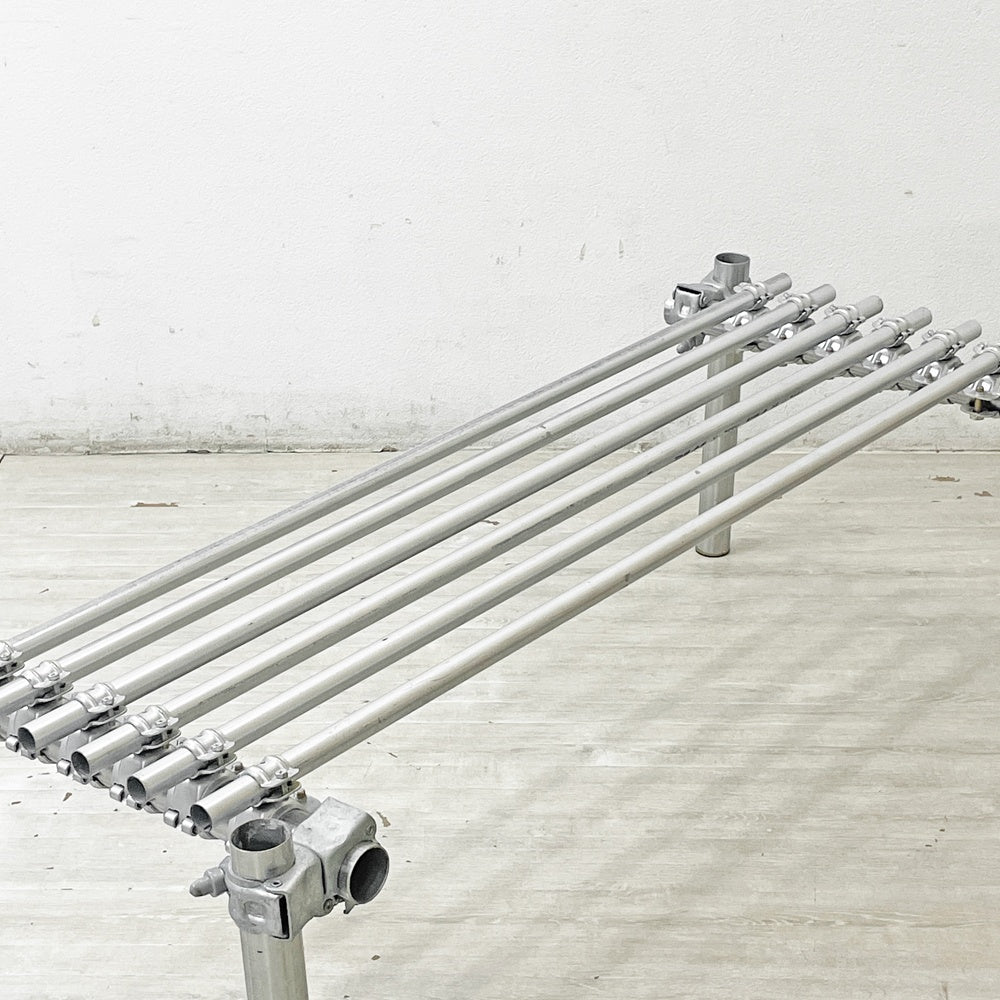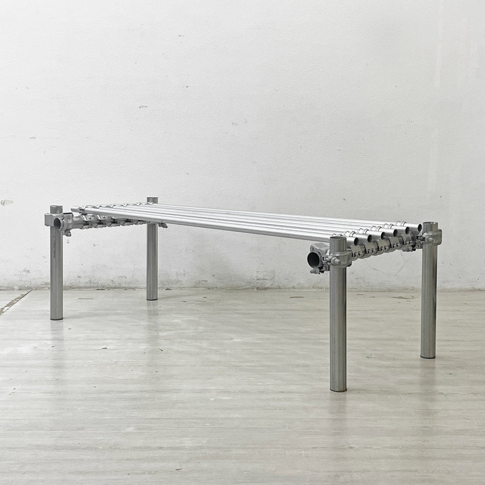 インダストリアルデザインが魅力的な剥き出しの単管パイプを用いたベンチです。