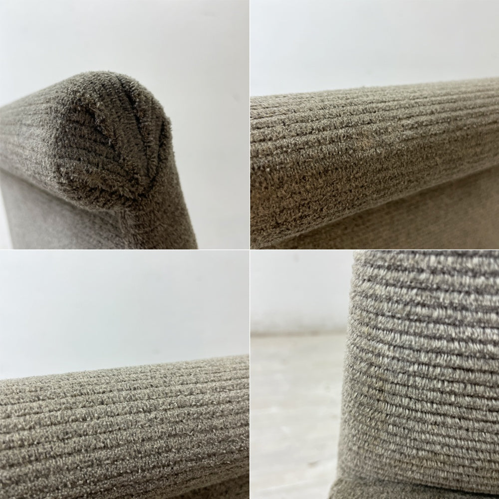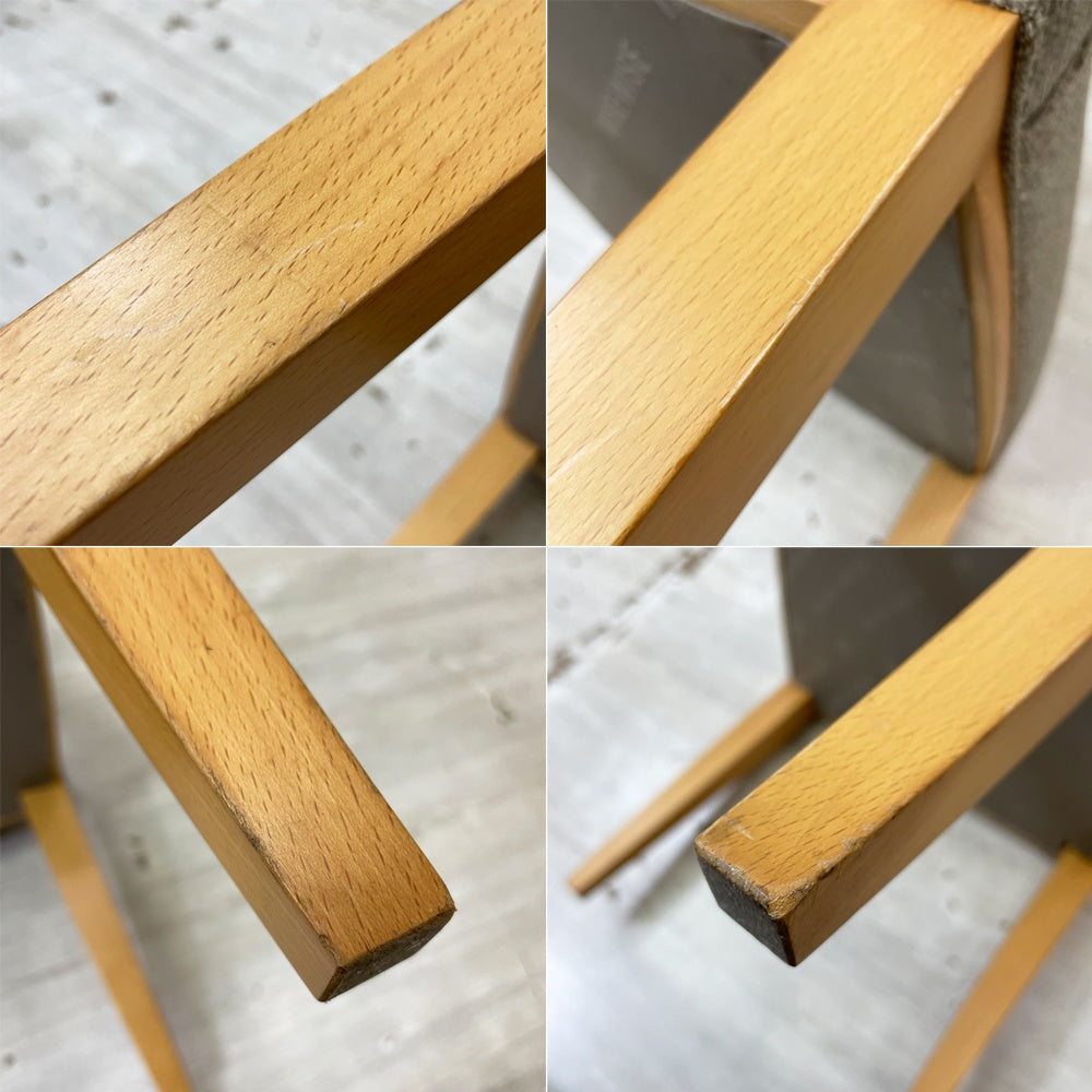 使用に伴い、ファブリックには薄いシミ汚れや起毛の潰れ、毛羽立ち、脚部には傷や擦れ、打痕や黒ずみがございます。その他、グラつきやガタツキ等の使用に問題となるダメージは無く、これからも充分に実用いただけるコンディションを保っております。