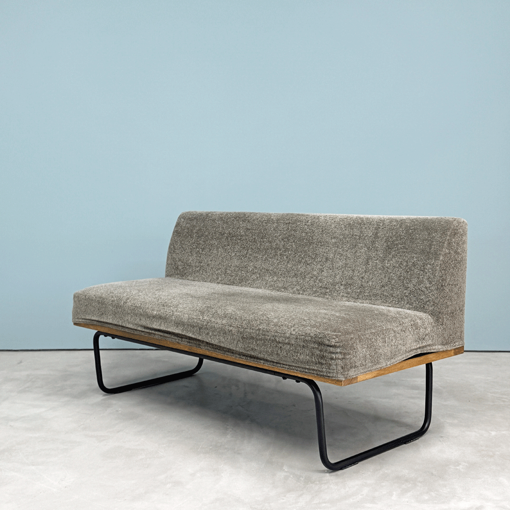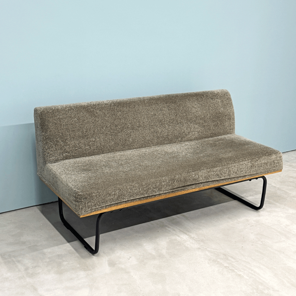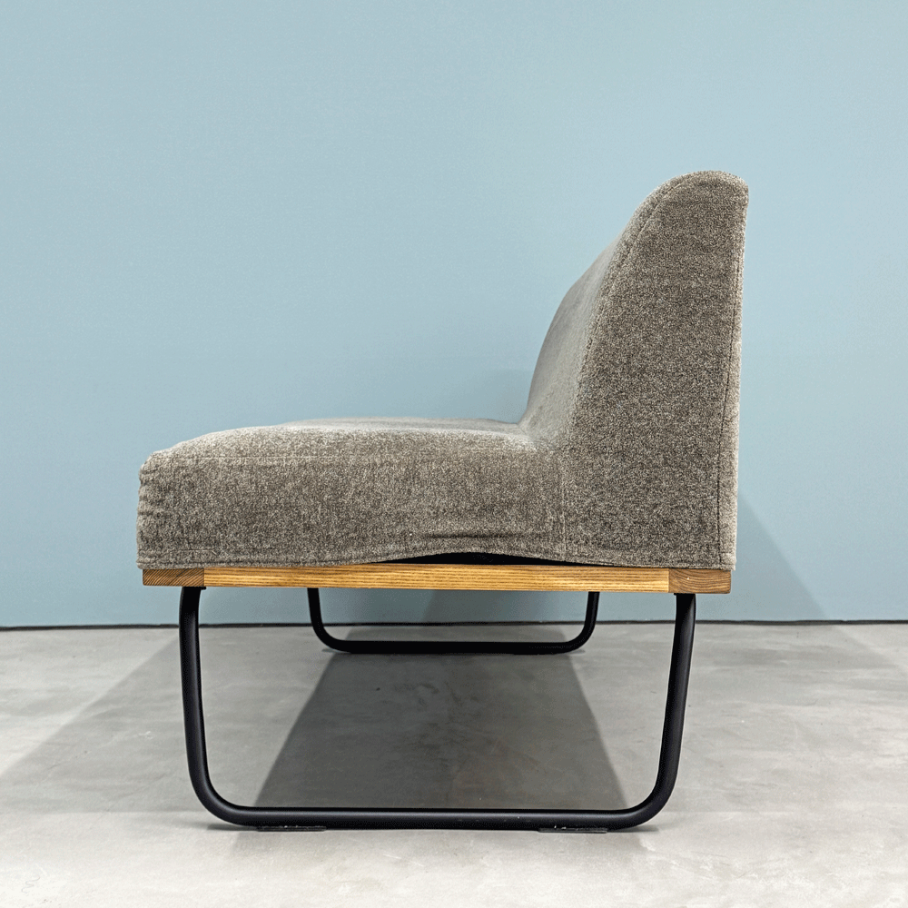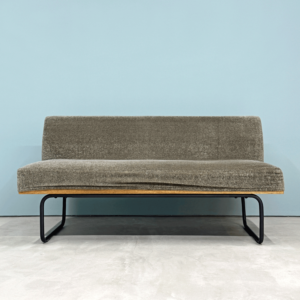 リセノ Re:CENO ワイリー WIRY 2人掛けソファ ベンチ クリンプ生地 グレー カバーリング スチール脚 ビンテージスタイル 定価¥86,800- ◎