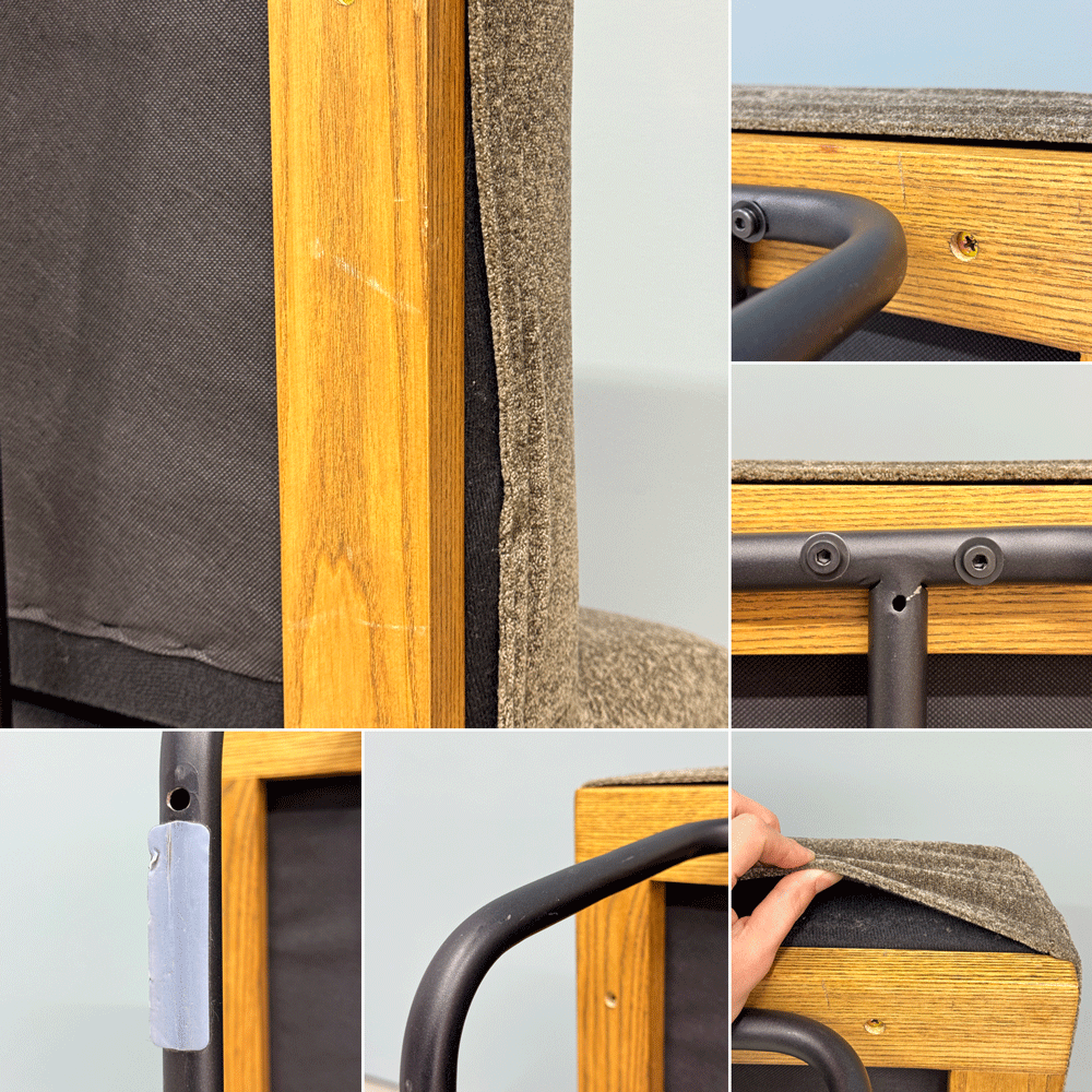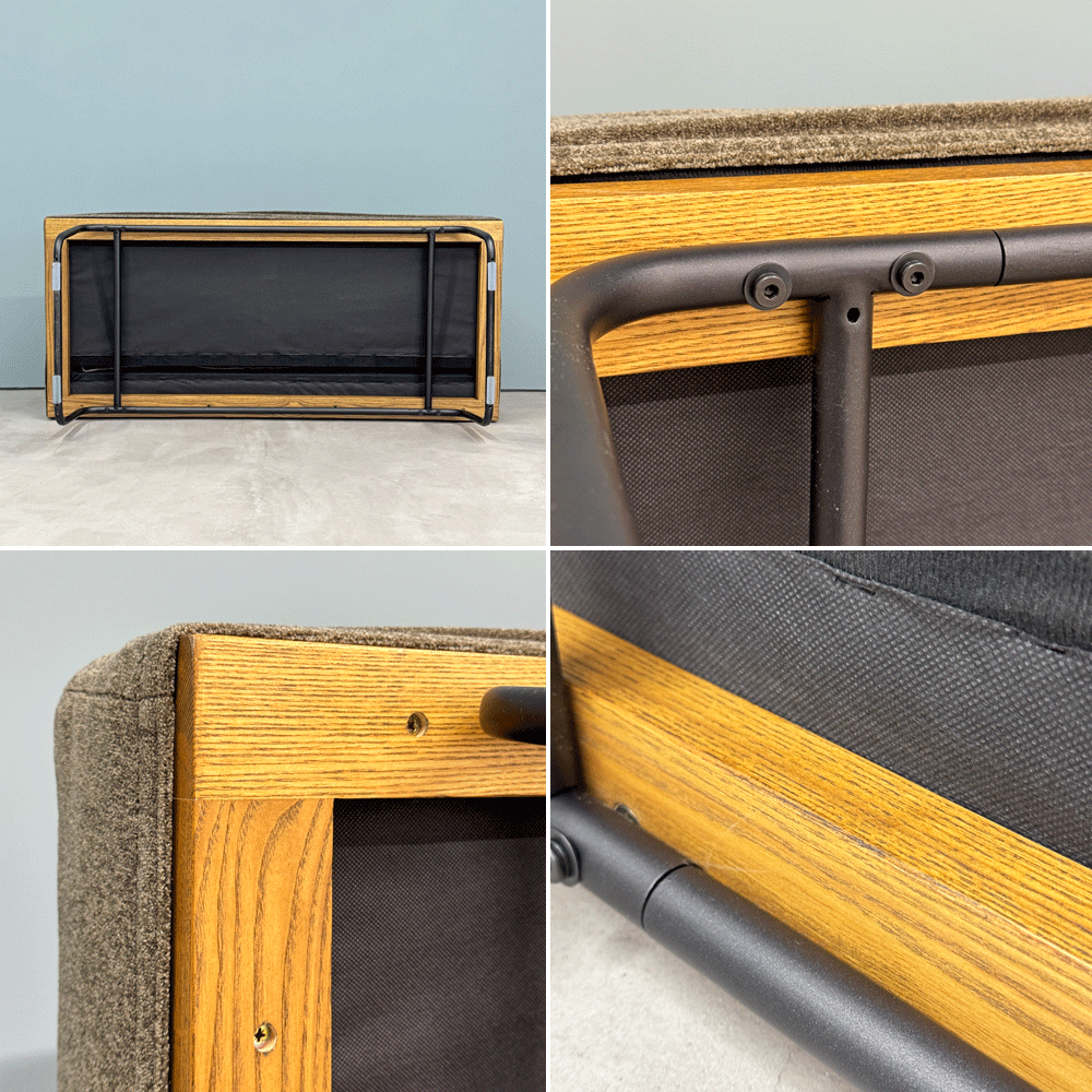使用に伴い、座面裏のウッドフレームに傷や擦れ、スチールフレームに擦れがございます。その他、大きく目立つような傷やや使用に問題となるダメージはございません。がたつきもなく全体的に美品と言えるコンディションを保っております。