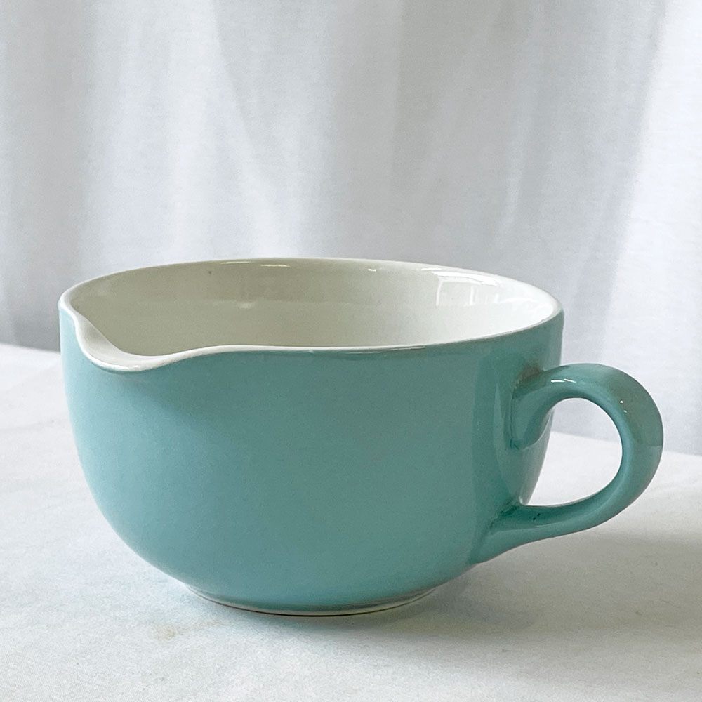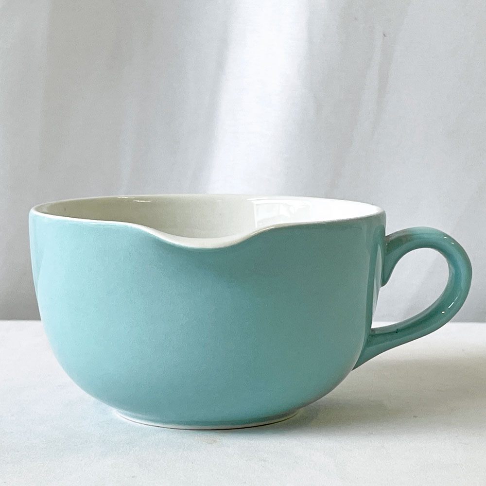 持ち手に対して注ぎ口が直角に配置されているのが特徴で、これは計算をした設計でミルクやソース、ドレッシングなどを正確に注ぐことができます。