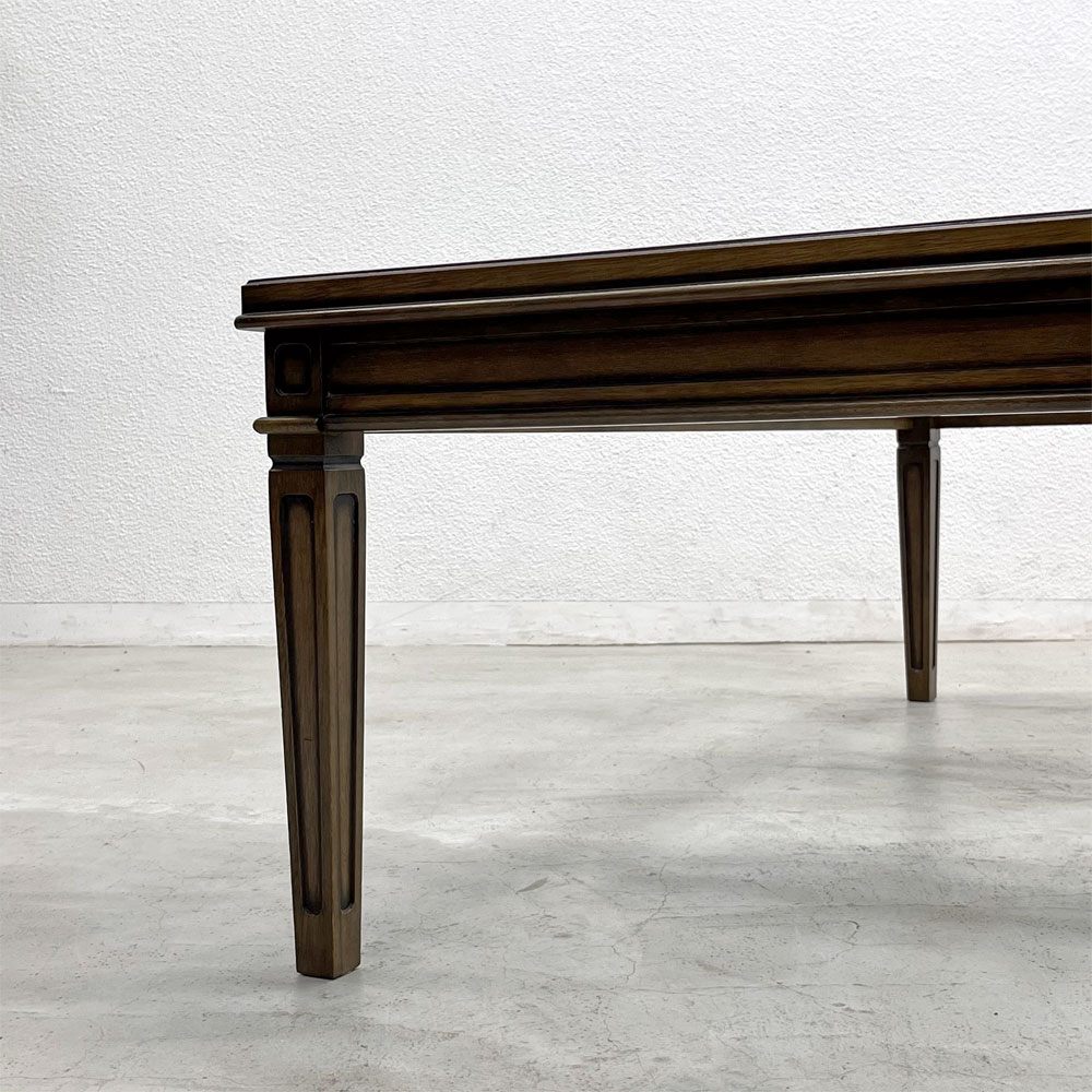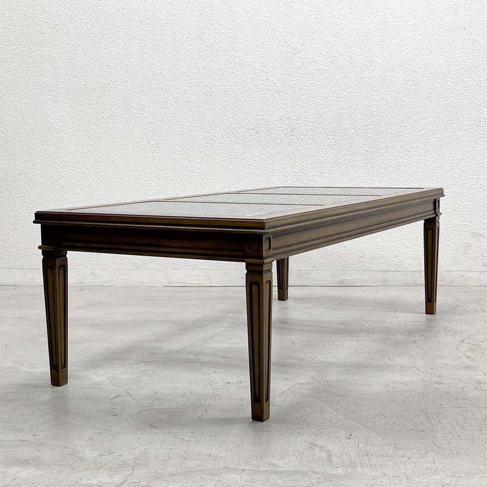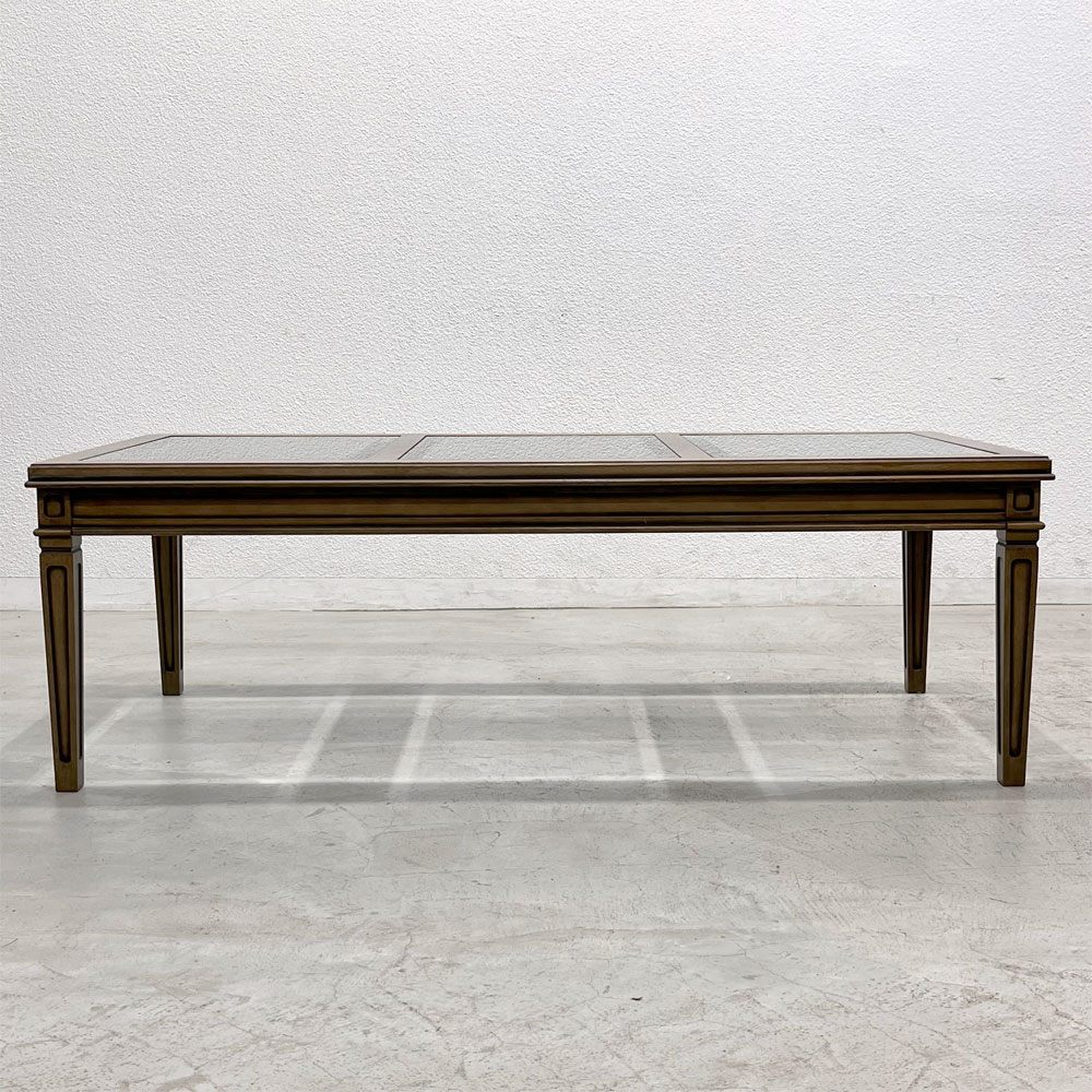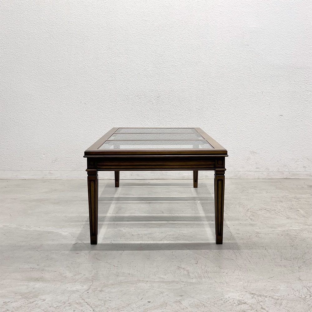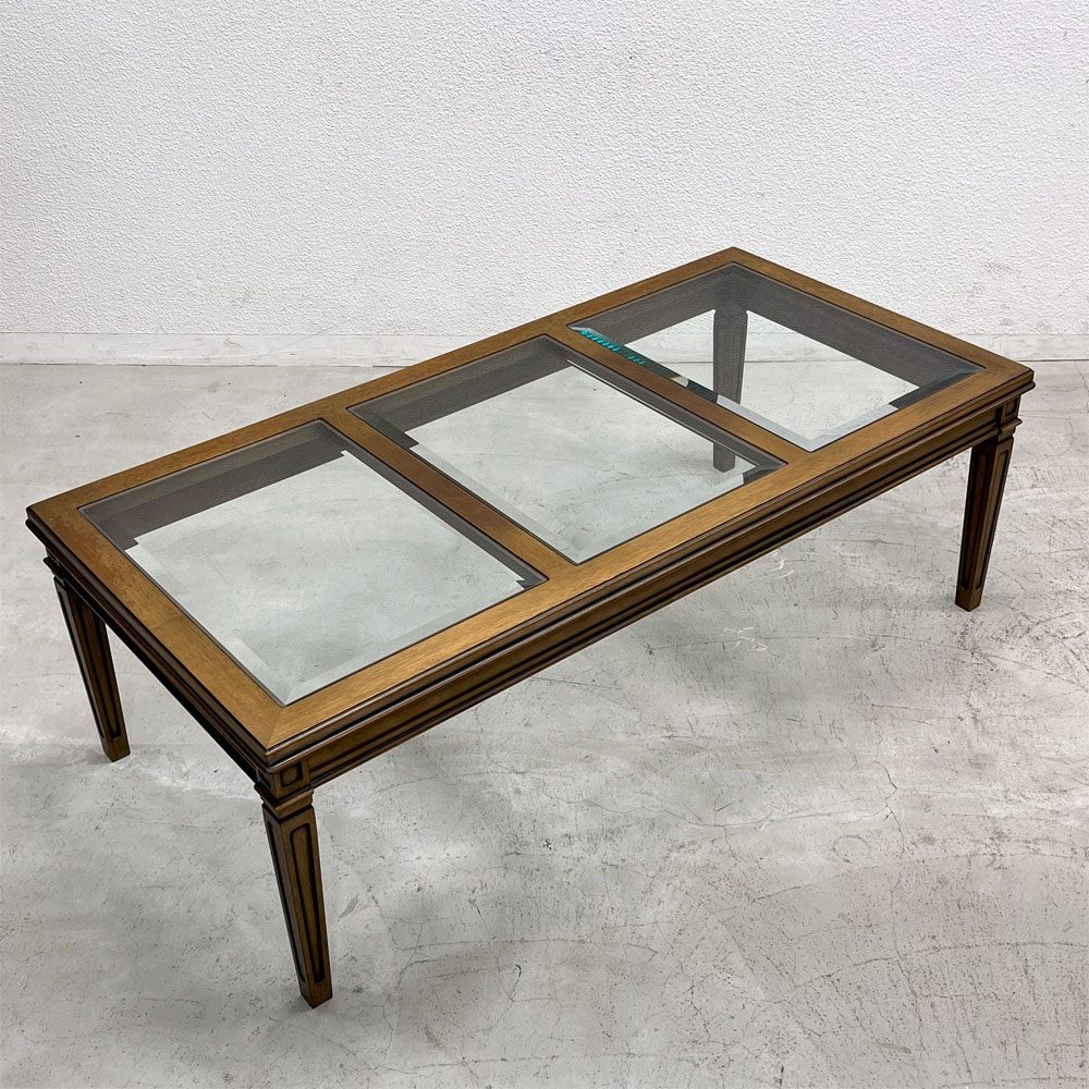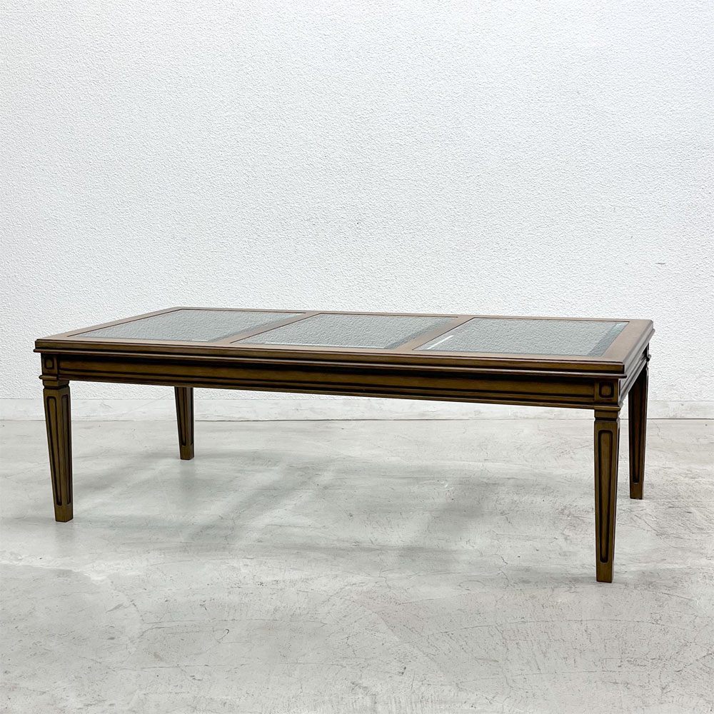 アンティーク風の木のフレームと三枚のガラス天板の組み合わせは、クラシカルでありながらも現代的な空間にも調和し、空間を軽やかに見せてくれる点も魅力です。