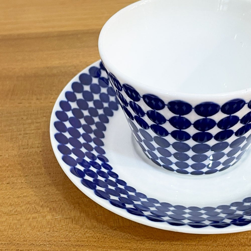 遠近法を取り入れたシンプルなドットの作品で、ハンドペイントによる個体差もまた魅力の一つとなっています。