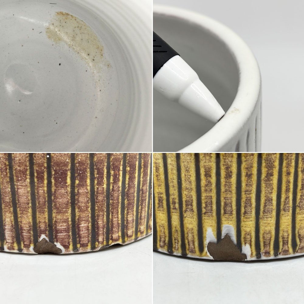 こちらはビンテージのお品物になります。経年により数箇所欠けが見られ、底面に取り切れない汚れ等がございますが、ご使用に問題となる大きなダメージはございません。