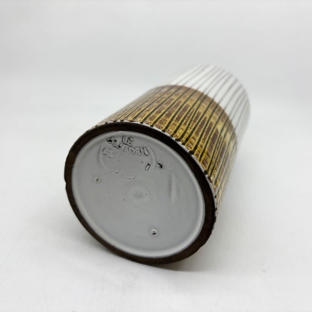 " ウプサラエクビィ / Upsala Ekeby "は1885年創業、北欧スウェーデンの陶器メーカー。こちらは20世紀を代表する同国の陶器デザイナー" マリ・シムルソン / Mari Simmulson "が手掛けた『 ストライプドベース STRIPED VASE 』になります。