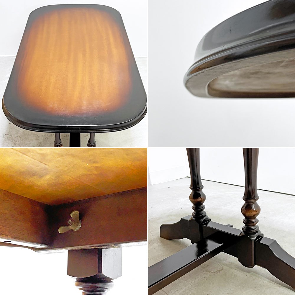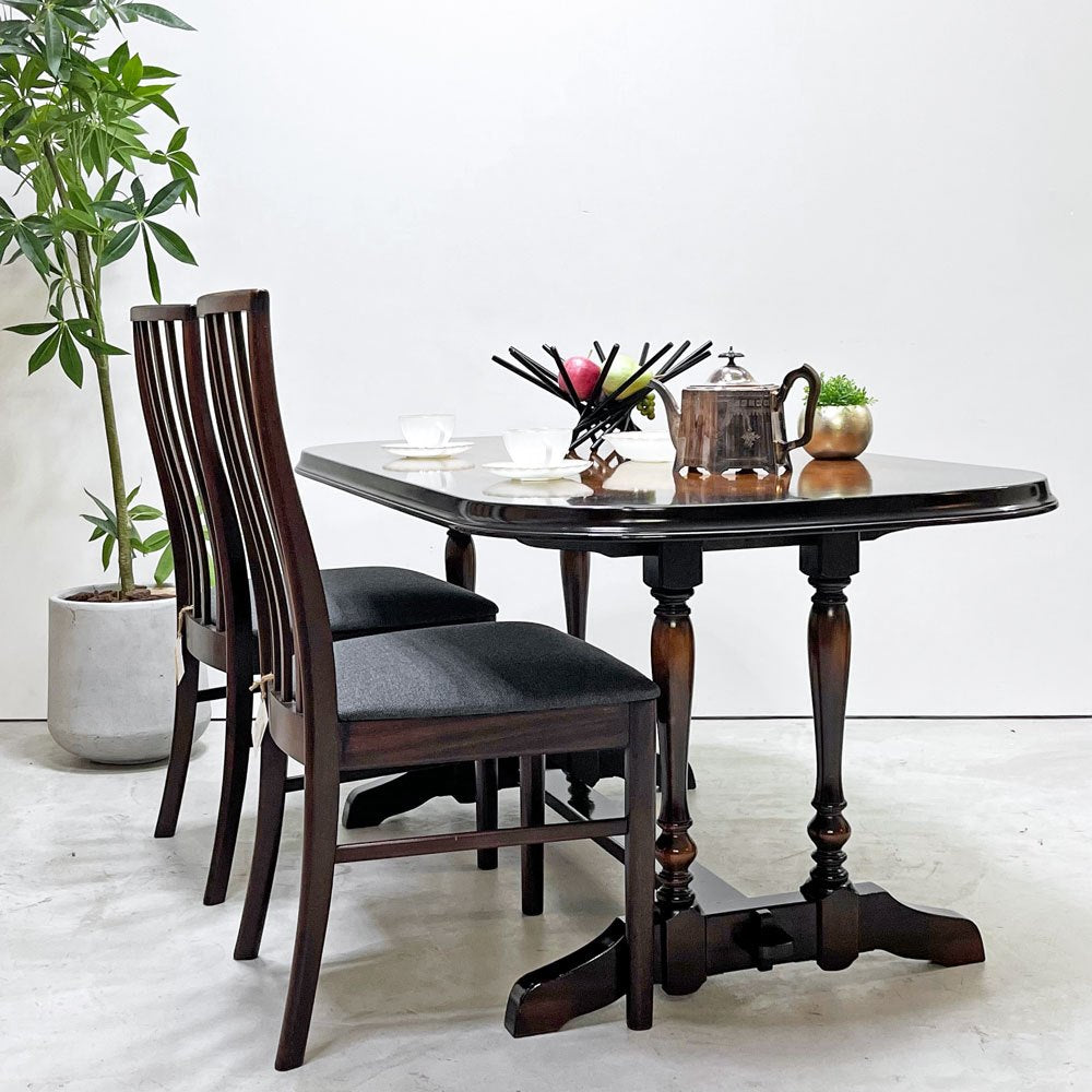 飛騨産業 HIDA ダイニングテーブル 木製 ダークブラウン W145cm クラシカルデザイン レトロ家具 ●