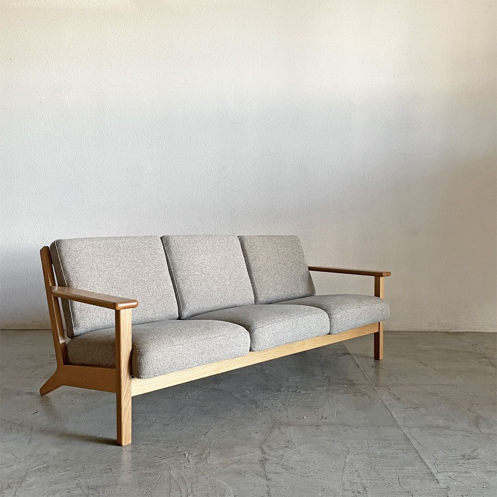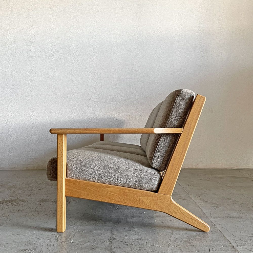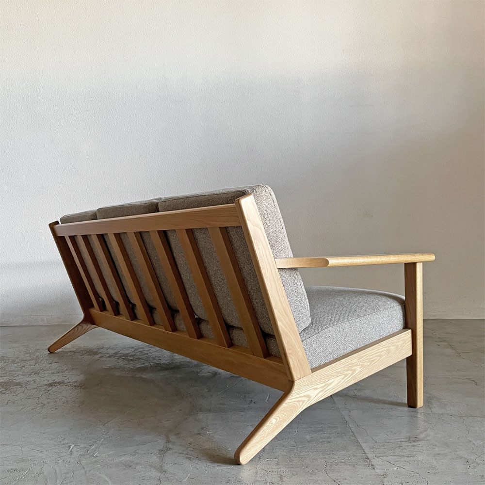 フレームにはナチュラルな木色のオーク材を採用。格子状の背もたれが美しく、壁付けだけでなくお部屋の中心に設置したくなる佇まいが印象的です。