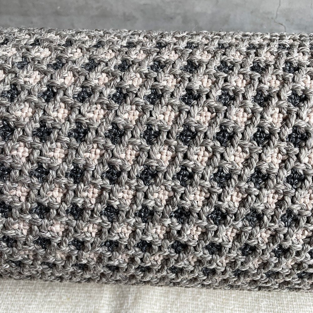 GANらしい素材の風合いと繊細な手仕事が伺えるクッションカバーはカバーリング仕様の為、取り外してクリーニングを行って清潔に使用が可能です。