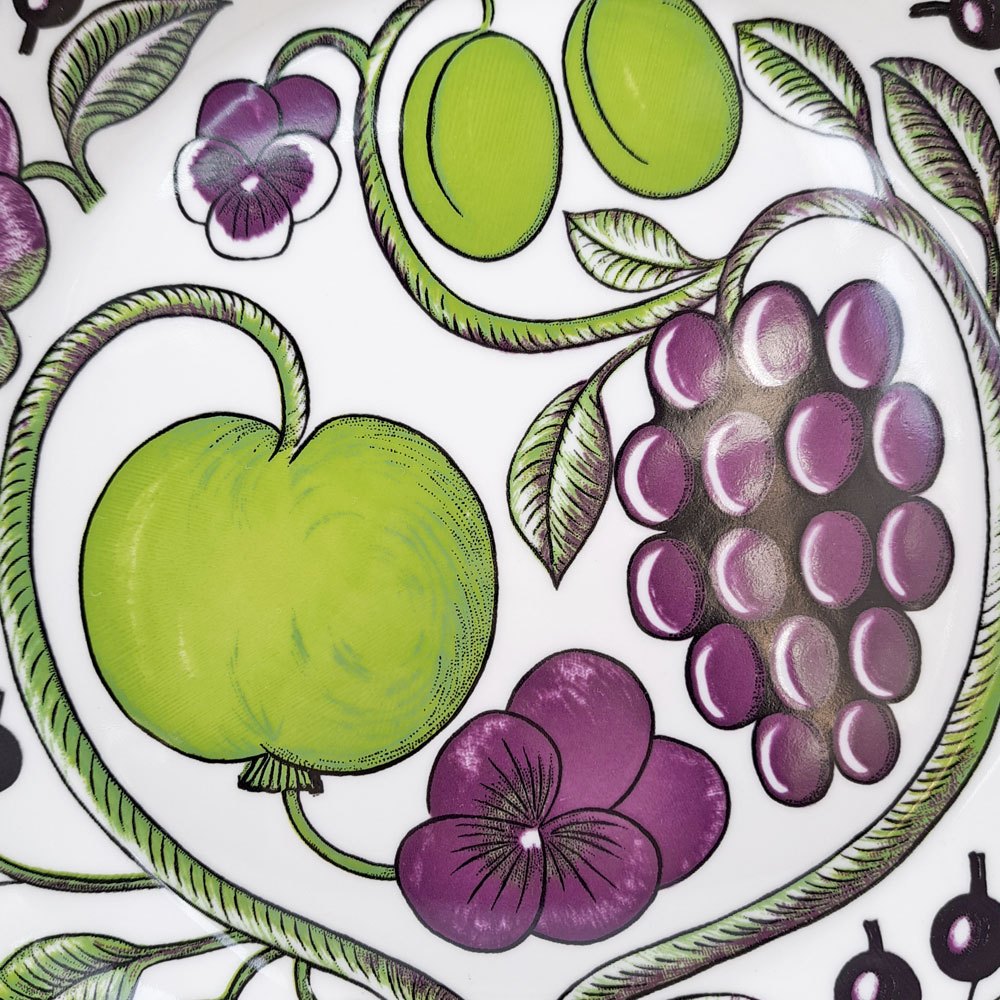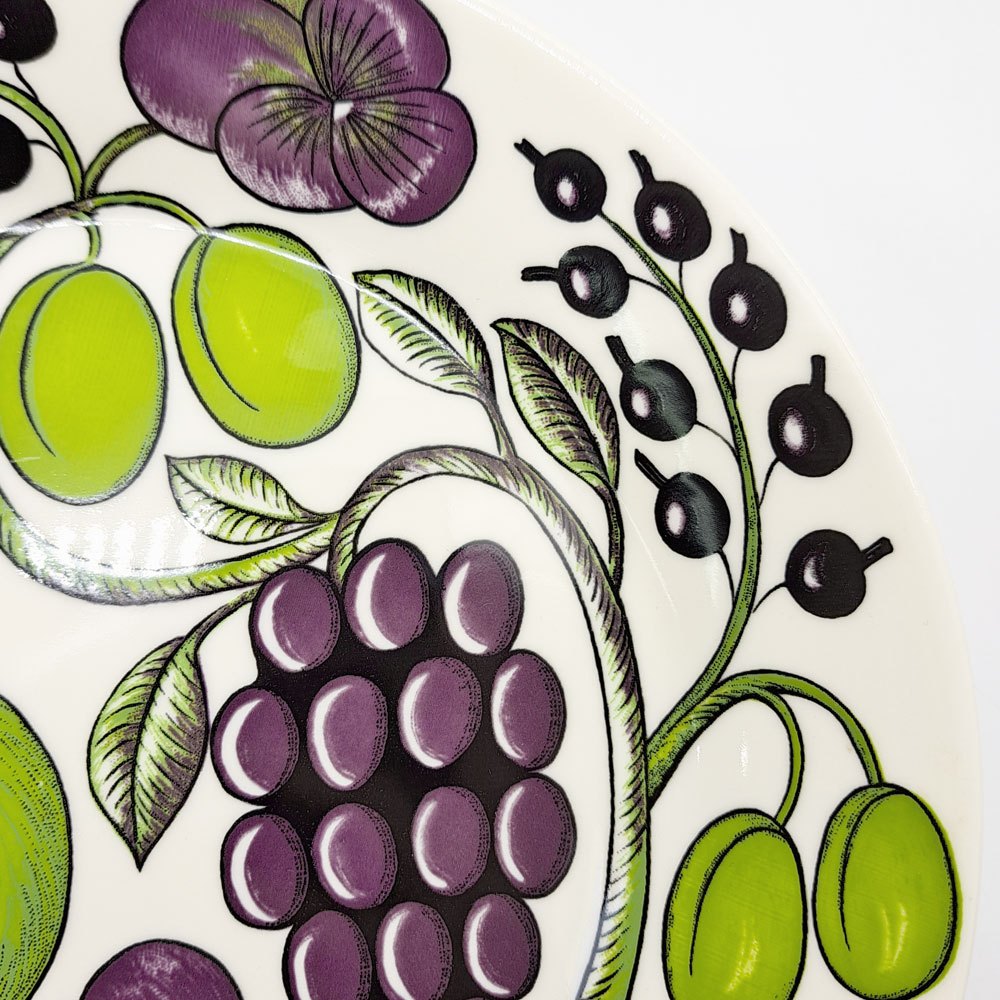 フィンランド語で「楽園」を意味する「Paratiisi」の名の通り、ブドウやリンゴ、プラムなどの果物や、カシス、パンジーなどの植物が器いっぱいに描かれています。